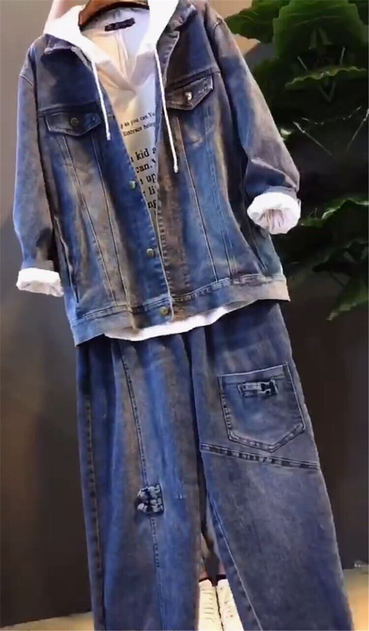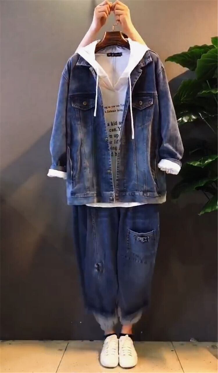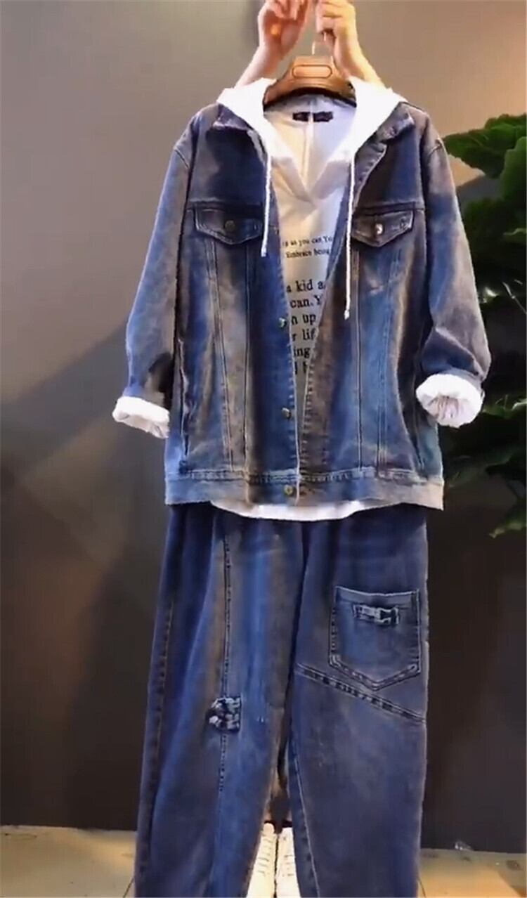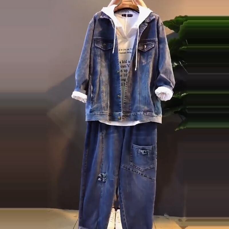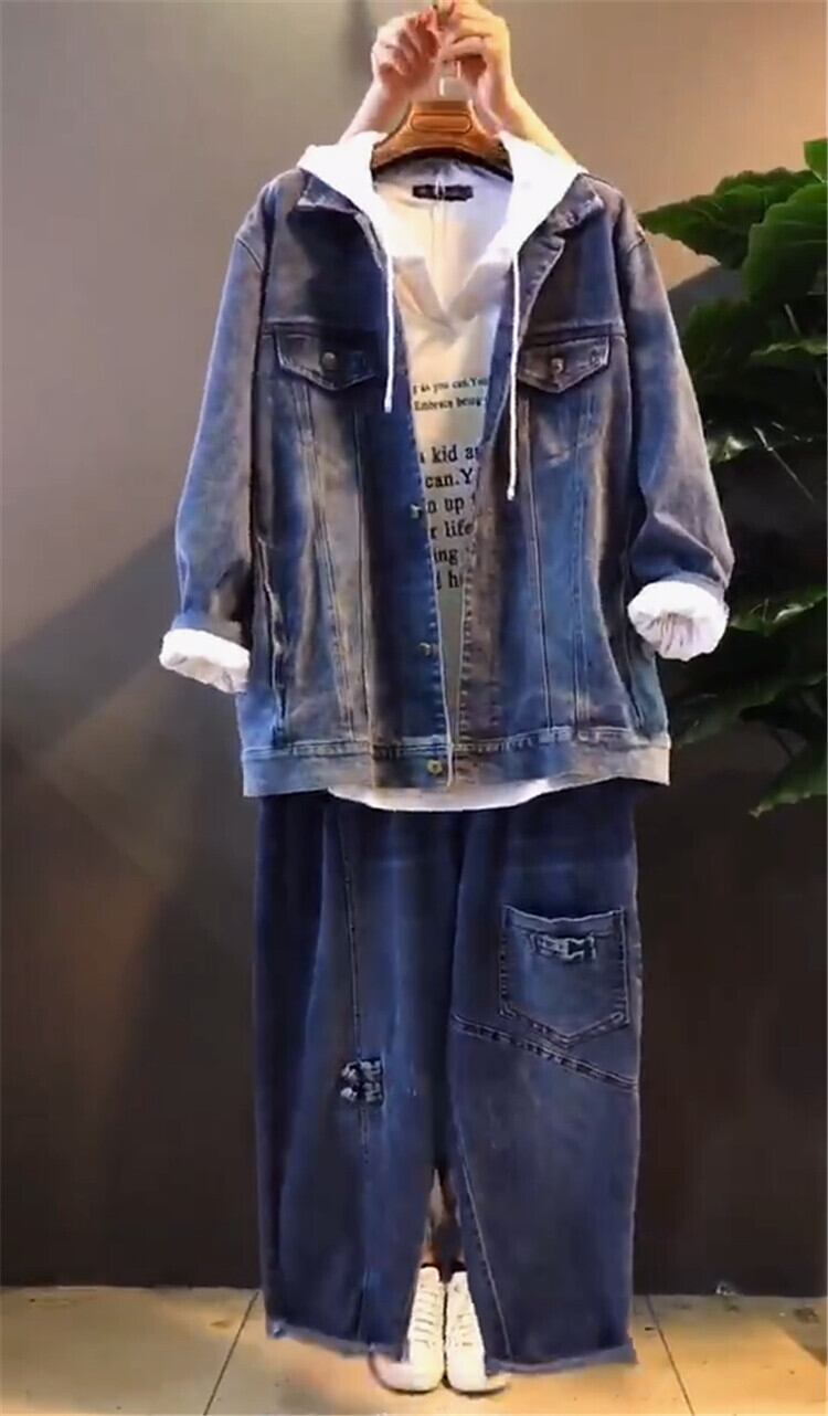 プラスサイズの女性用フード付きセーター、ファットmm秋のコート、カバーベリー、ルーズ、シン、ウエスタンスタイルのスモールシャツとジーンズ ミックスインファッション74862975383