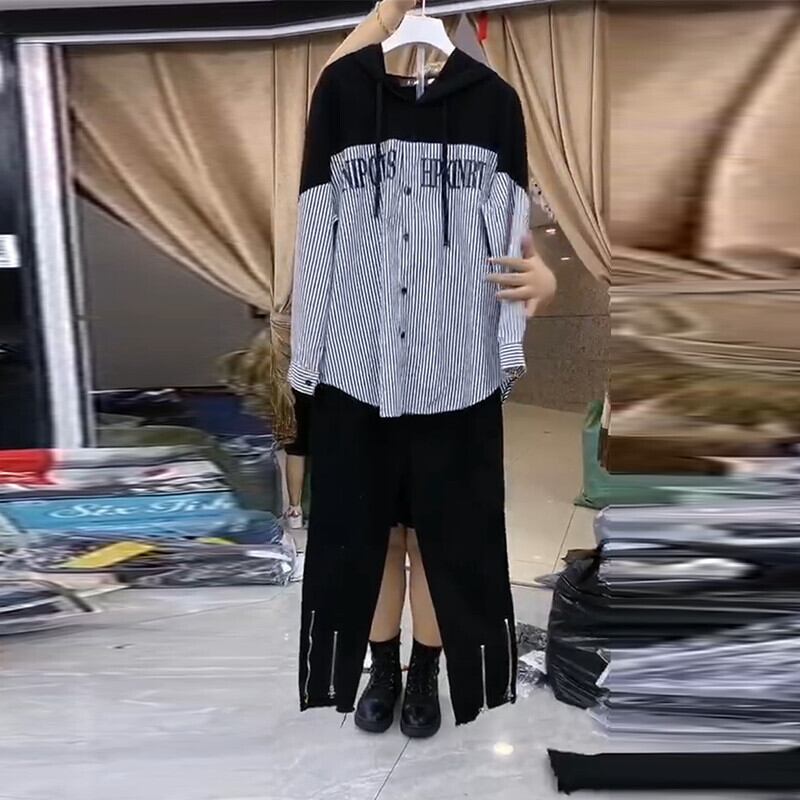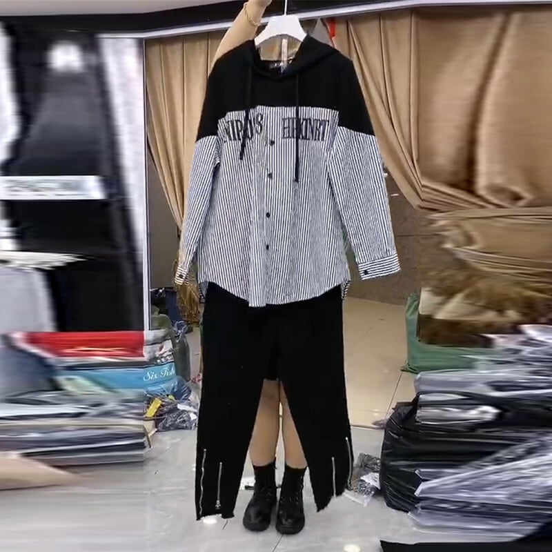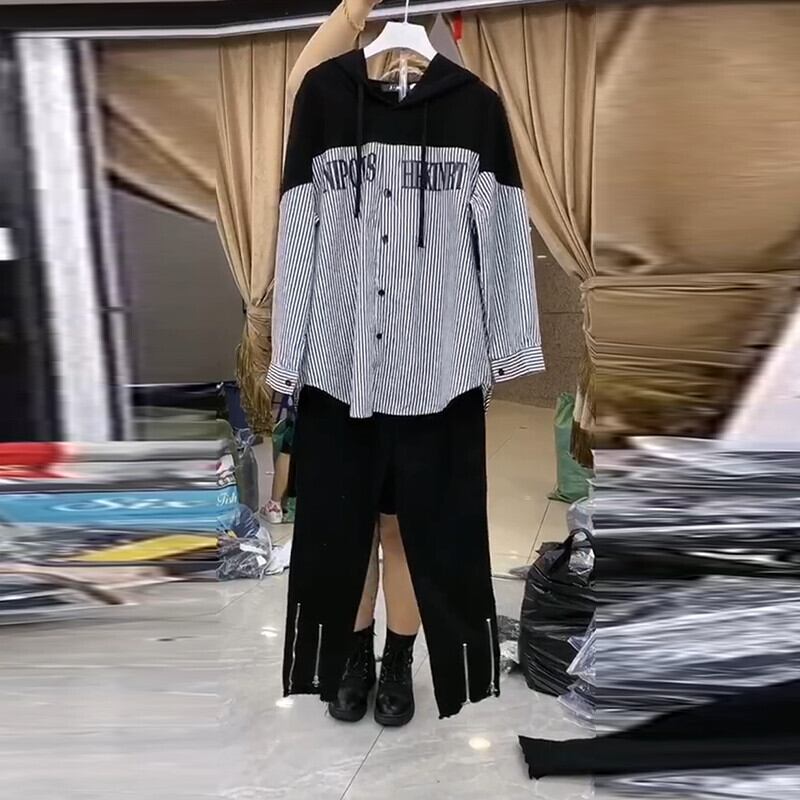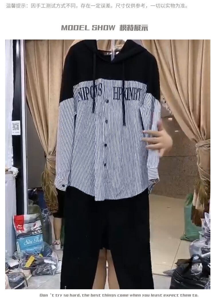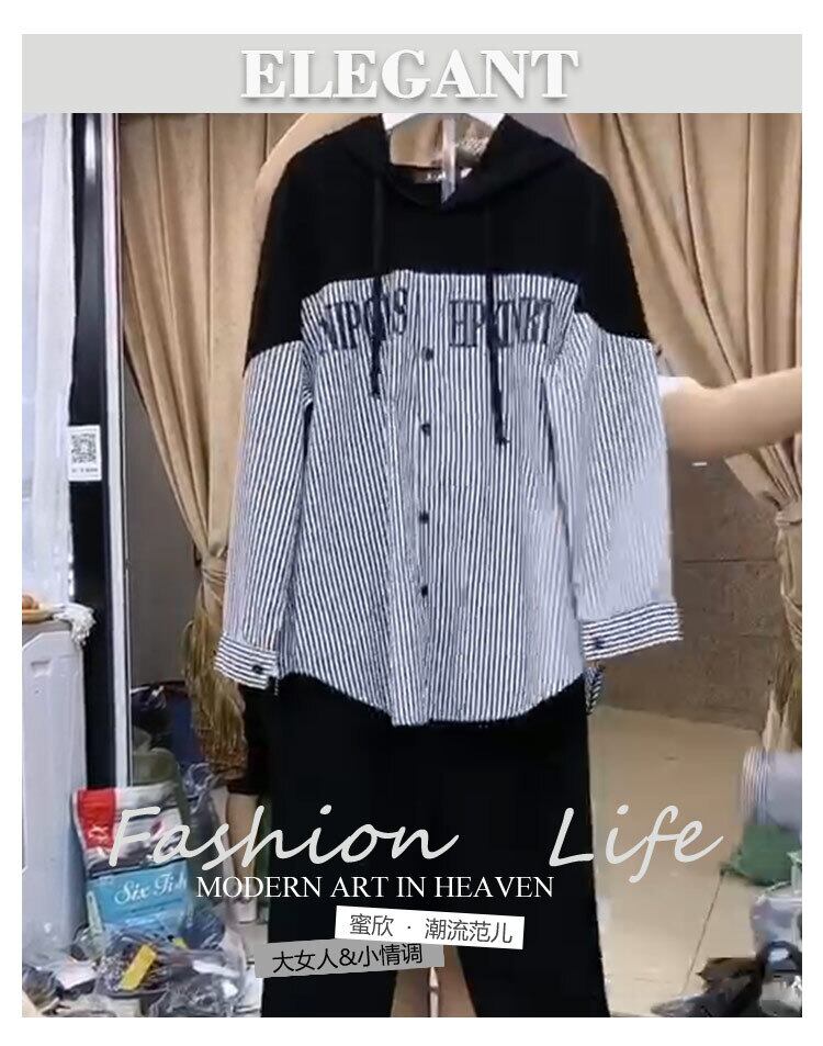 長袖フード付きストライプシャツレディース秋服2020ニュースタイルプラスサイズレディースファットmm秋の服レディースパンツトップウエスタンスタイル ミックスインファッション32798540598