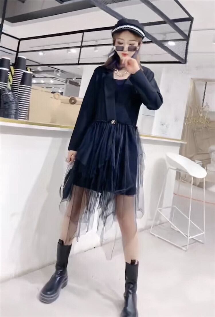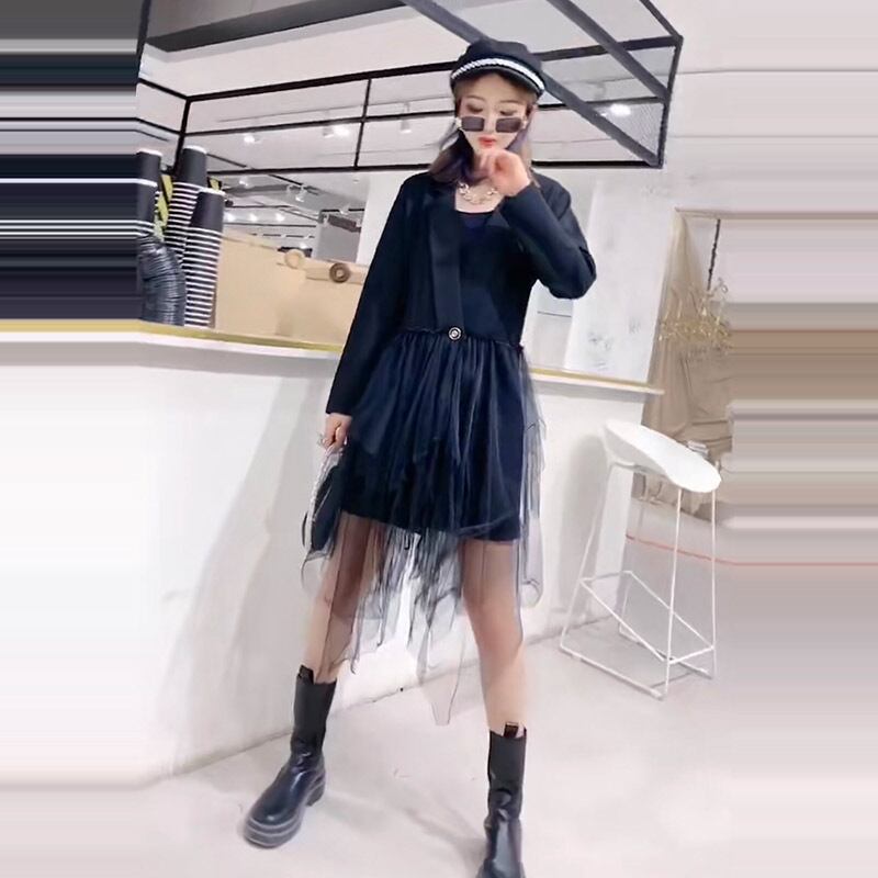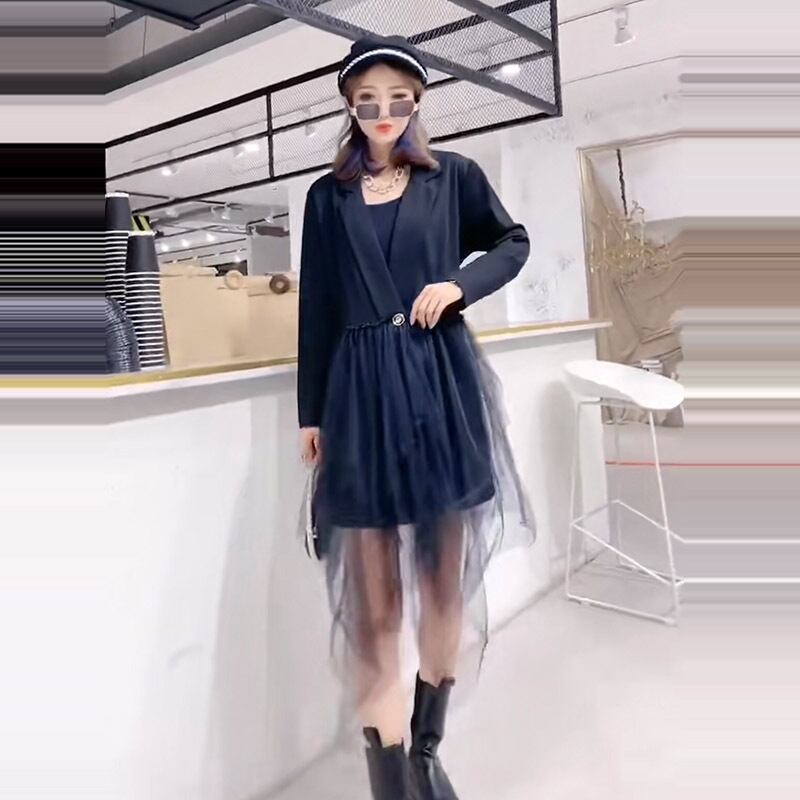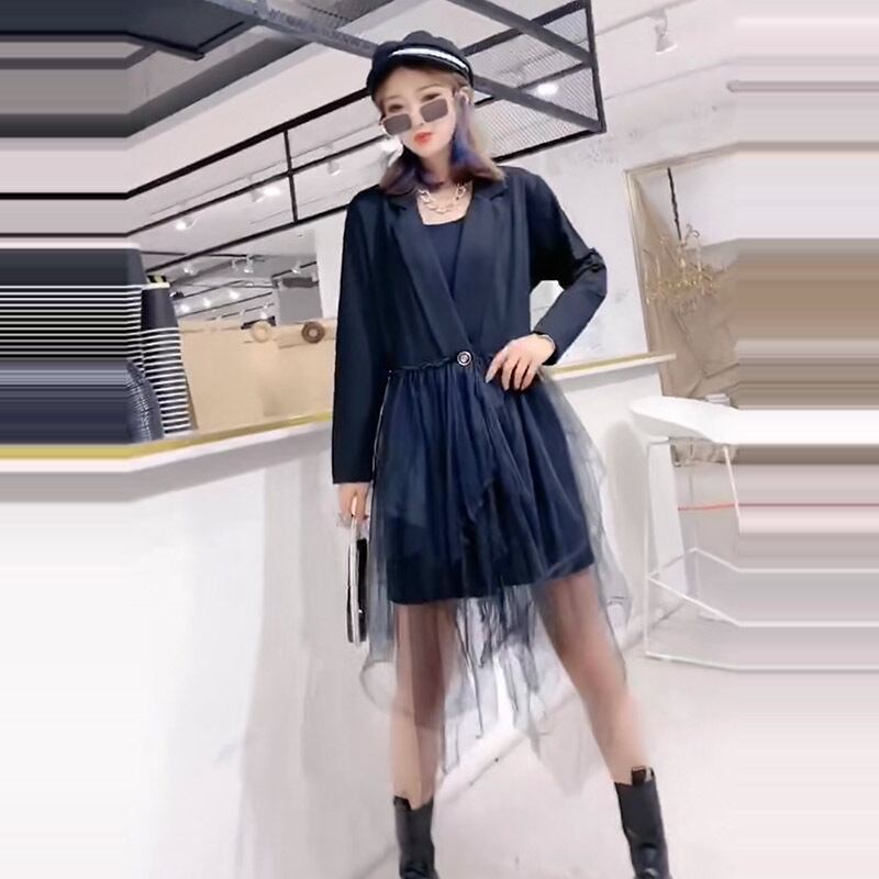 プラスサイズのレディースジャケットファットmm200kg秋ルーズウエスタンスタイルファットシスターは薄い2020新しいメッシュドレス ミックスインファッション43929465736