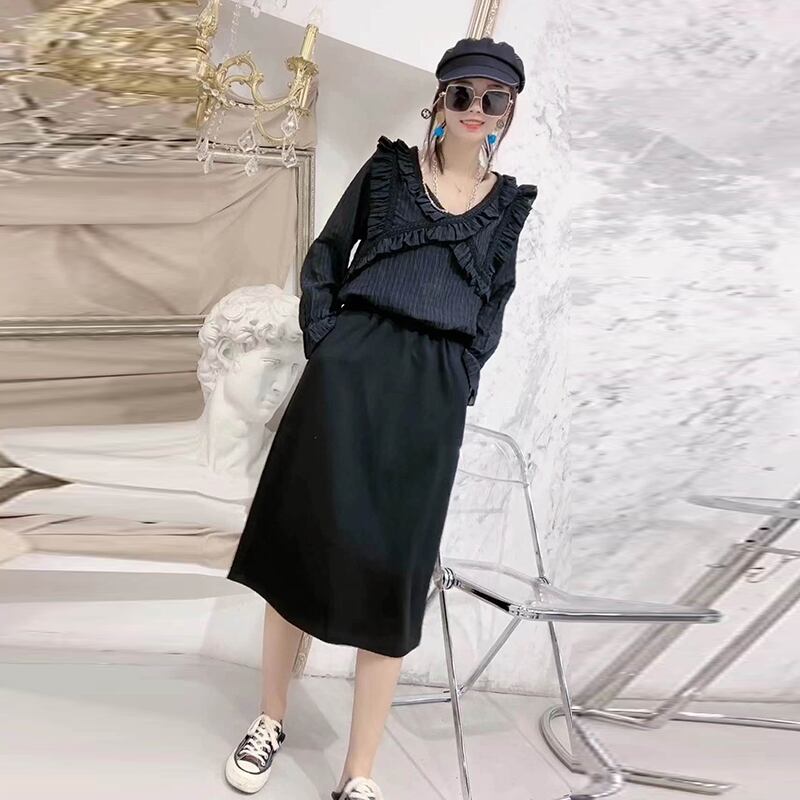 2020年秋の新しいウエスタンスタイル、年齢削減、薄い蓮の葉の襟、ボトミングシャツ、スカート、プラスサイズの婦人服、ファットmmファッション ミックスインファッション23577681608
