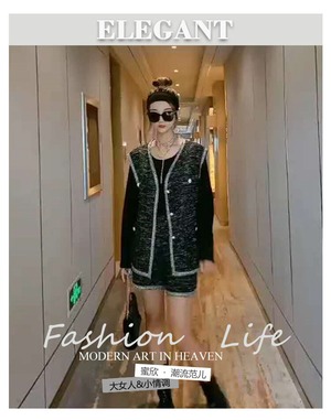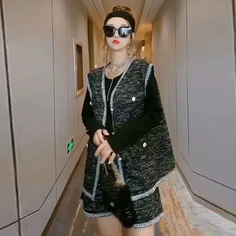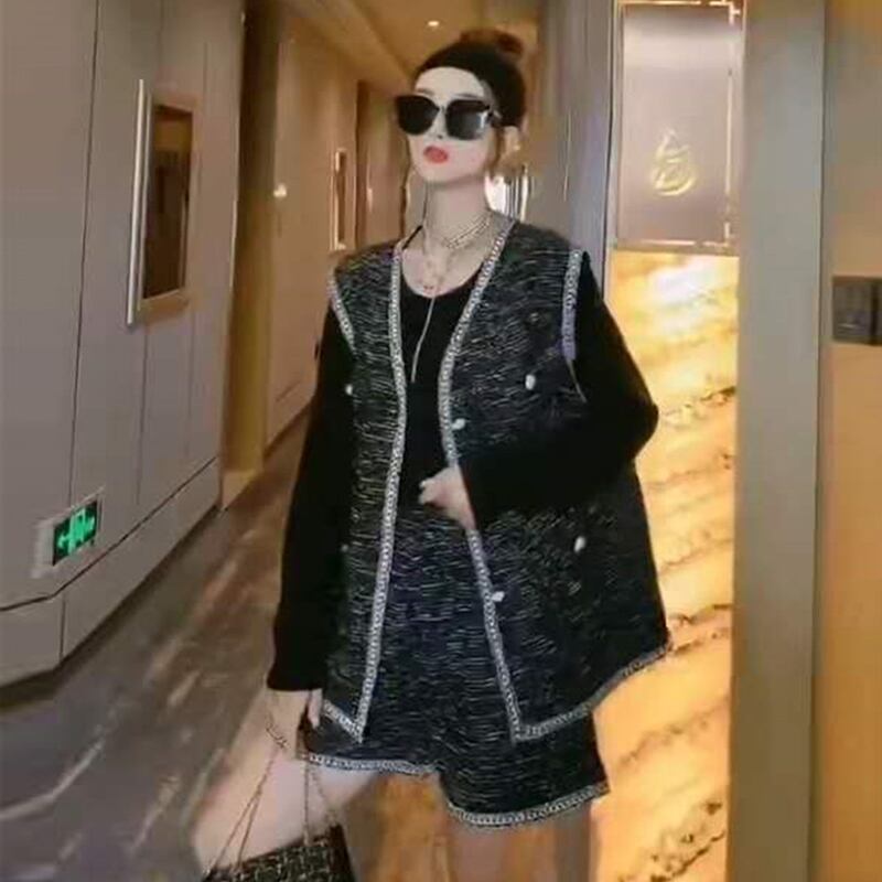 2020年秋に着るやや太った新しいプラスサイズの女性の太った姉妹の洋風チョッキショーツスリーピーススーツ ミックスインファッション30352111945