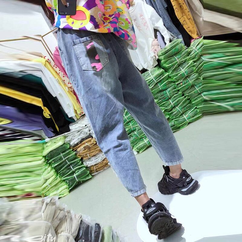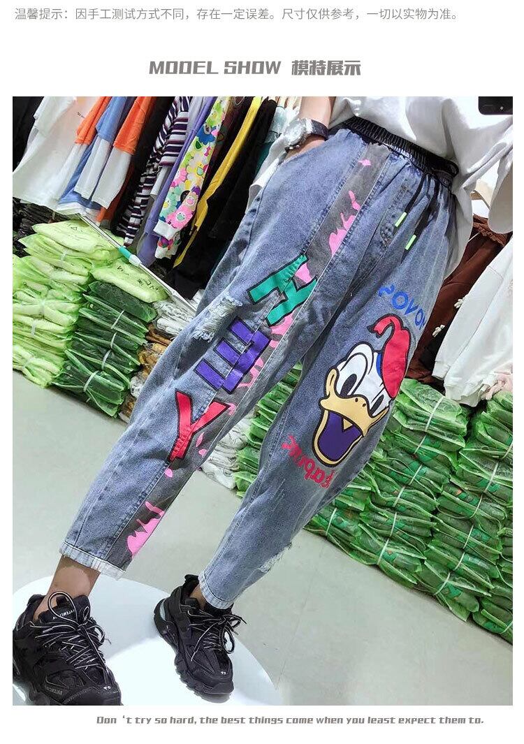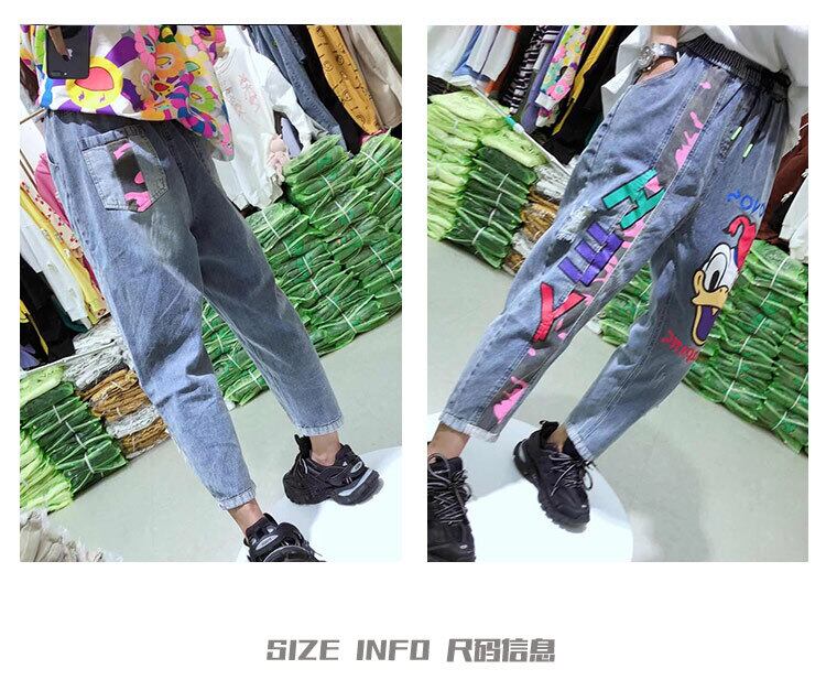 プラスサイズの女性の太った姉妹弾性ウエストジーンズ女性秋のハイウエストルーズ細い文字漫画の女性パンツトレンド ミックスインファッション74331797756