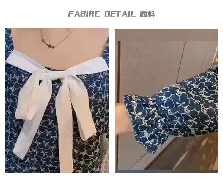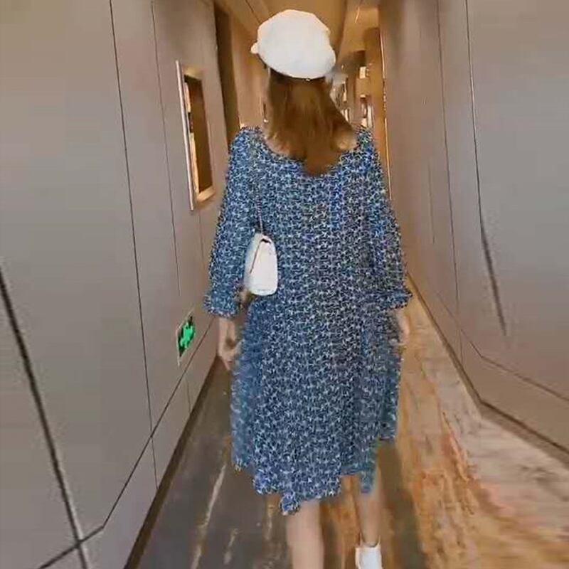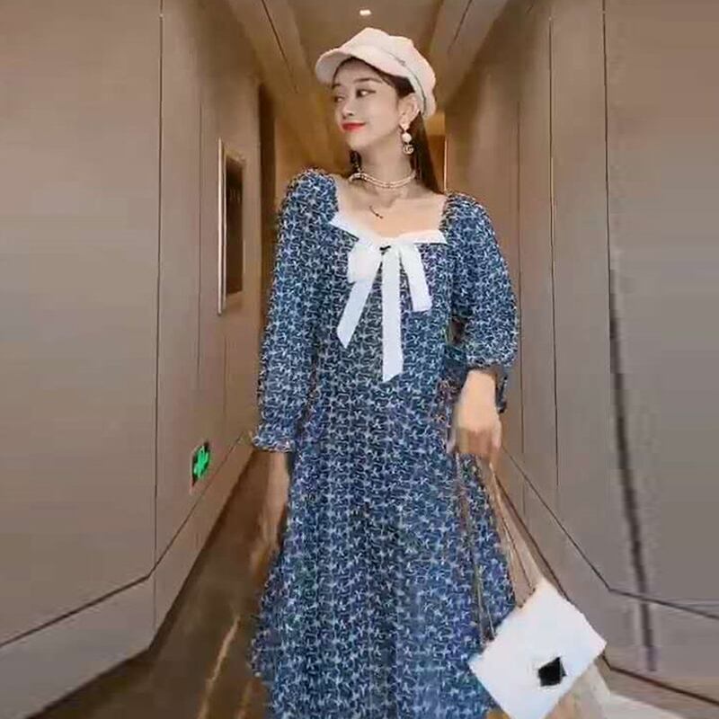 プラスサイズの女性の太った姉妹ドレスの女性の秋のバージョンの長いゆるい蝶結びは薄い四角い襟のスカートでした ミックスインファッション77749427602