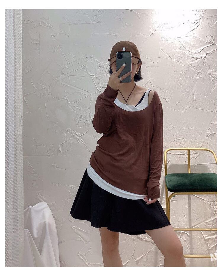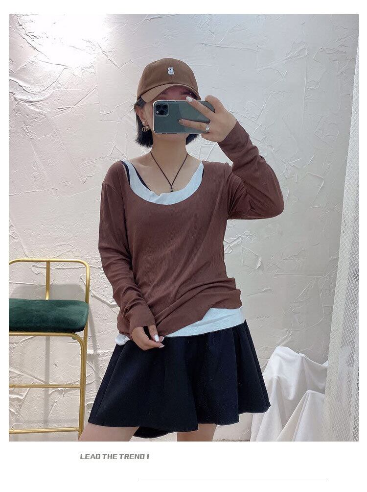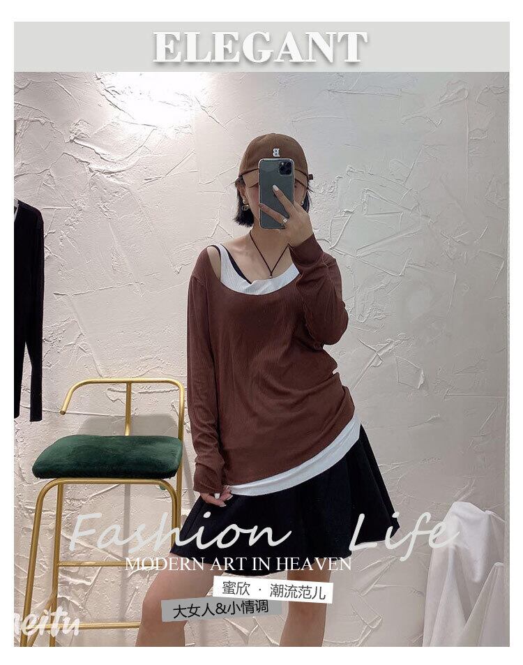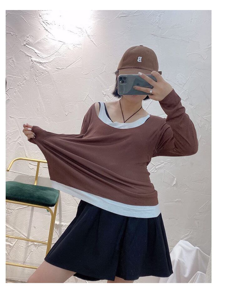 2020年秋新作プラスサイズレディースファットmmカバーベリースリミングTシャツレディーストップフェイクツーピースボトミングシャツタイド ミックスインファッション54291665501