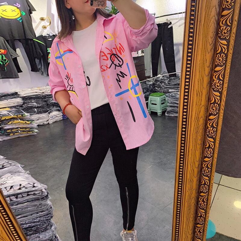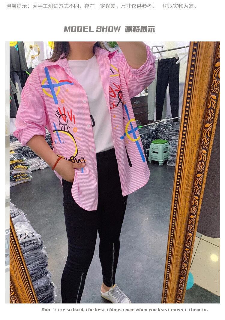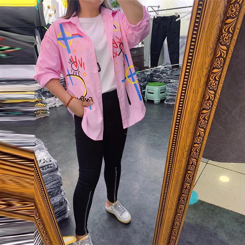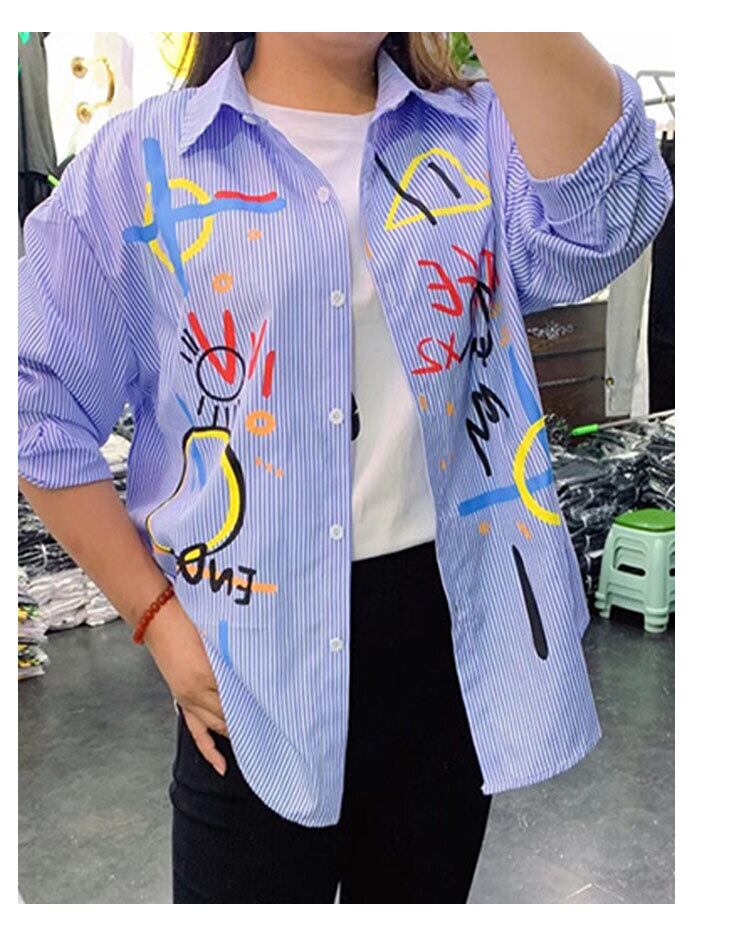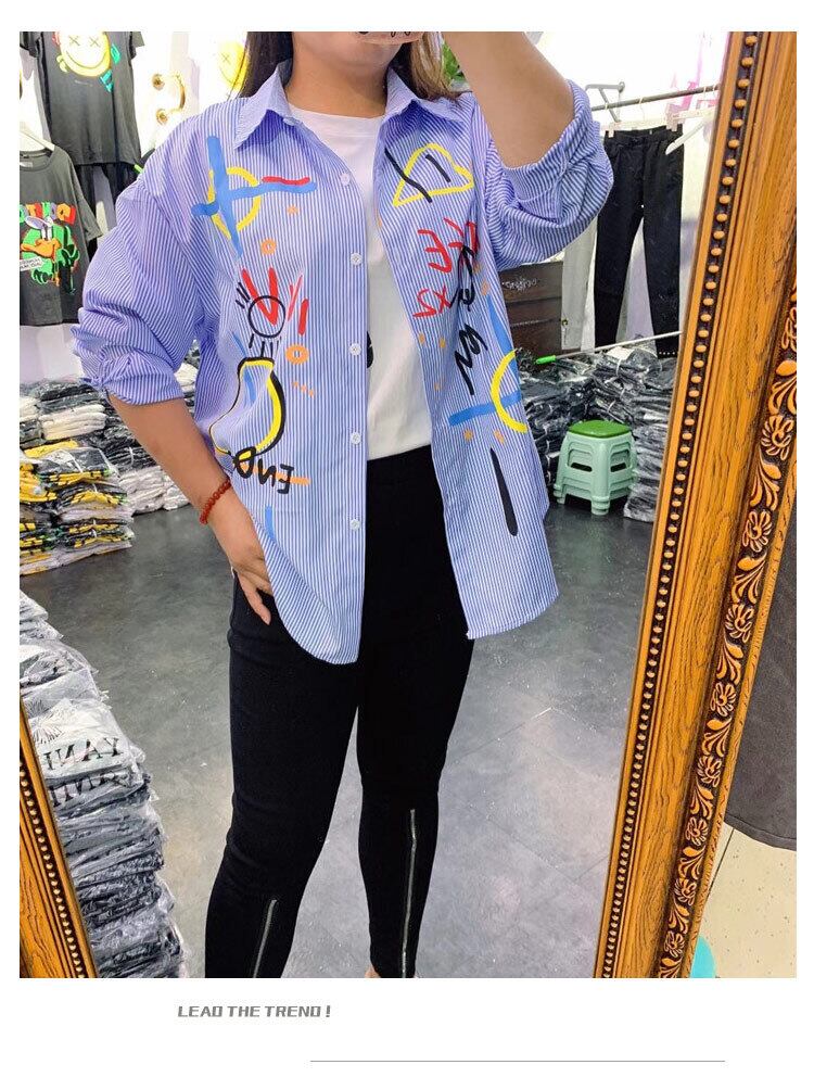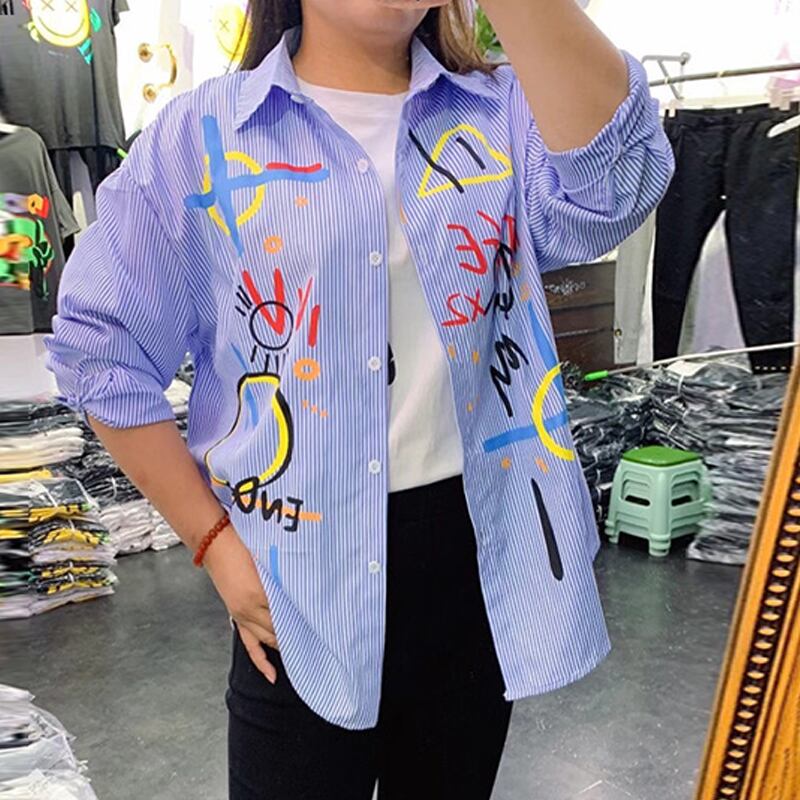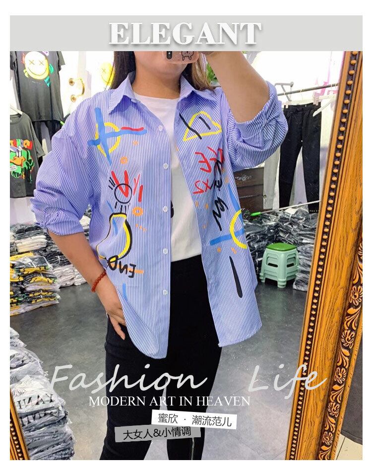 プラスサイズの婦人服2020秋新しいルーズウエスタンスタイルのストライプシャツ太った姉妹が肉と薄い秋のトップスをカバー ミックスインファッション43962832196