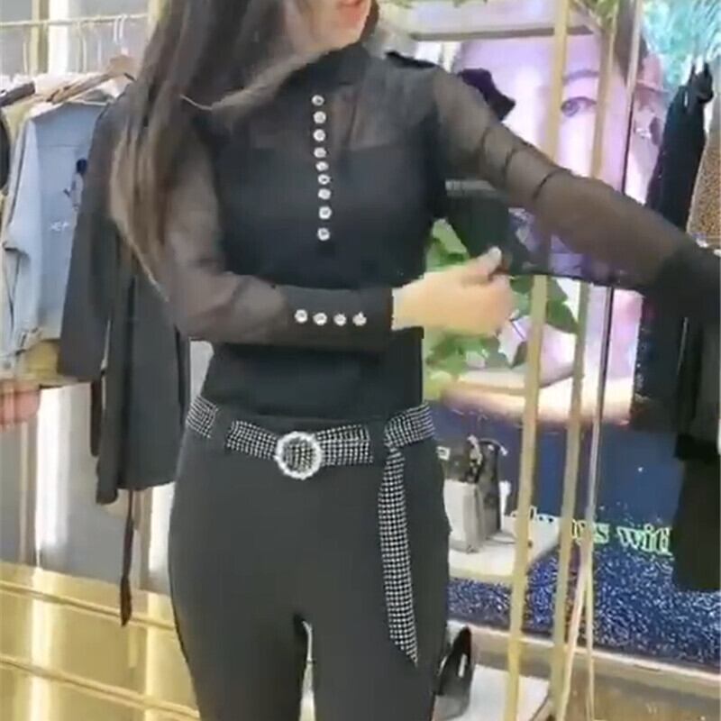 プラスサイズの女性の2020年の新しい秋のTシャツ、ウエスタンスタイル、ルーズで薄い、年齢を減らすネットヤーンボトミングシャツ、ファットmmカバーベリートップ ミックスインファッション12407520198