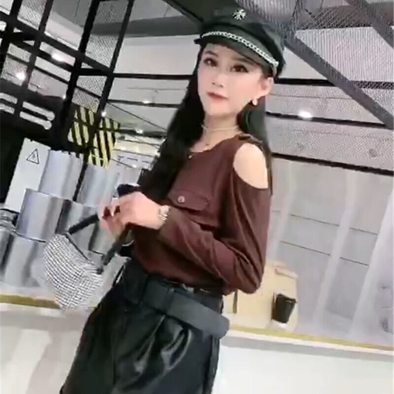 エクストラファットプラスサイズの女性のファットシスターカバーベリーボトミングシャツルーズで薄いエインスタイルのオフショルダーシェミングトップ ミックスインファッション85266050066