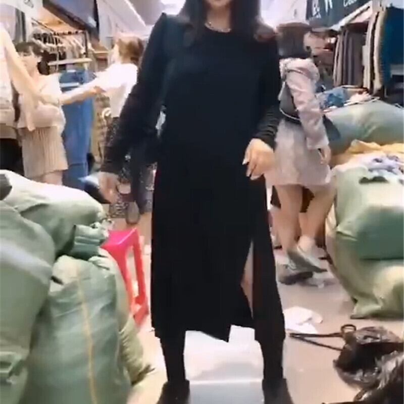2020年新作ファットシスタードレスラージサイズルースウィミン秋着ファットカバーお腹サイドスリットストレートスカートトレンド ミックスインファッション47541740530