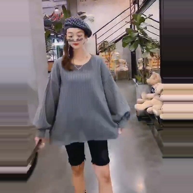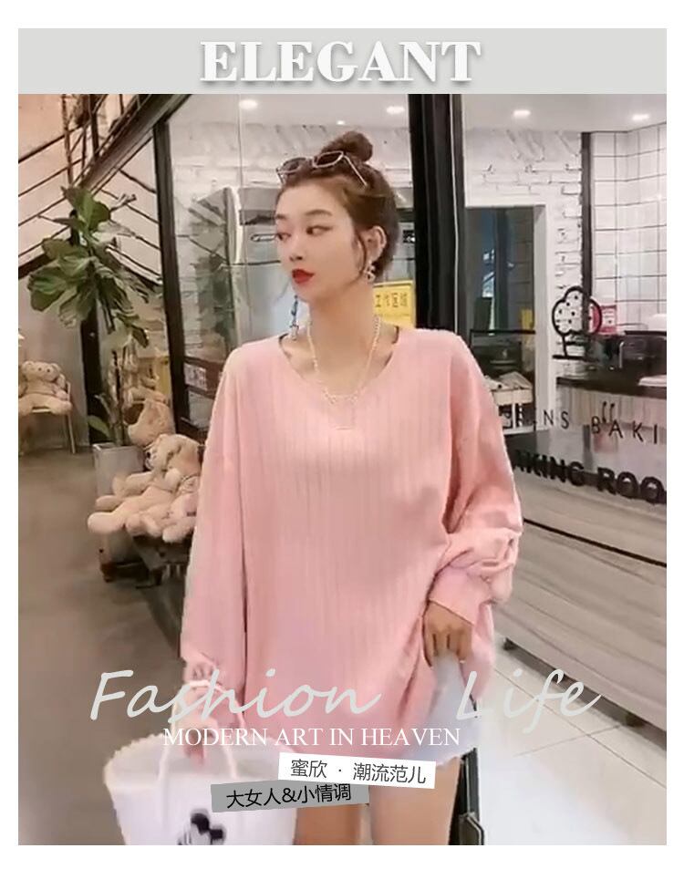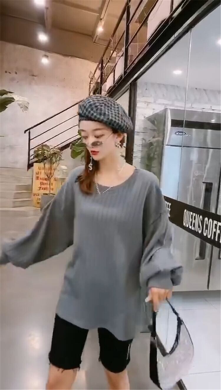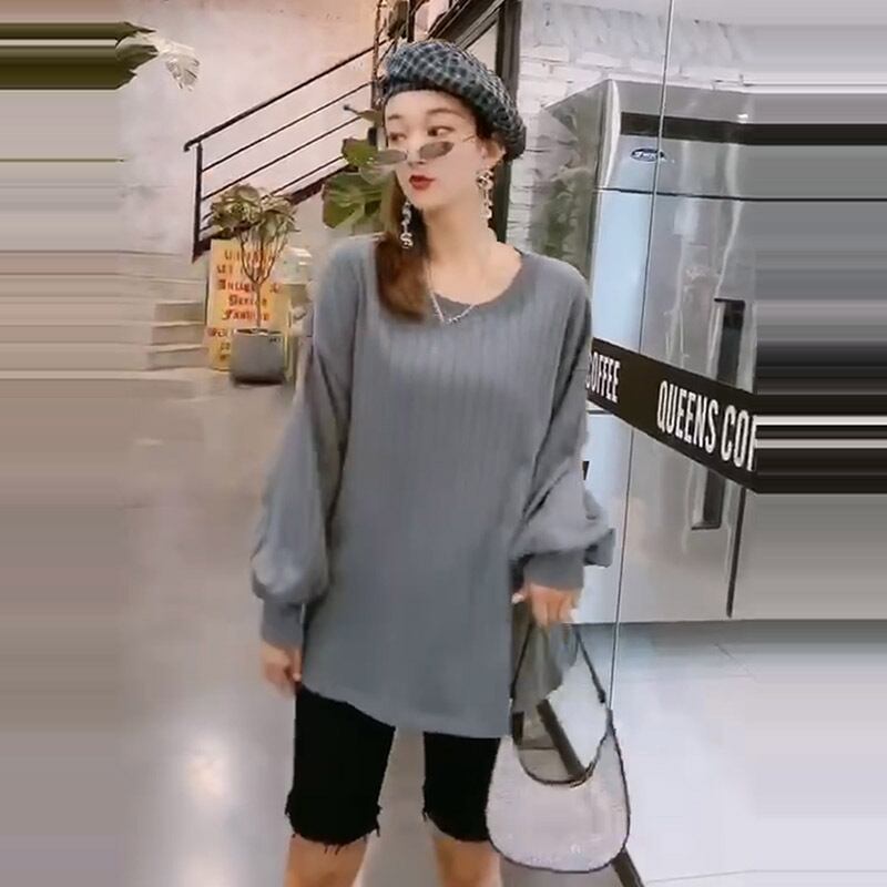 プラスサイズの女性の秋の新しい腹のTシャツ、太った姉妹、年齢の減少、丸い首、薄いブラウス、ゆるい隠された肉の潮 ミックスインファッション85196958841