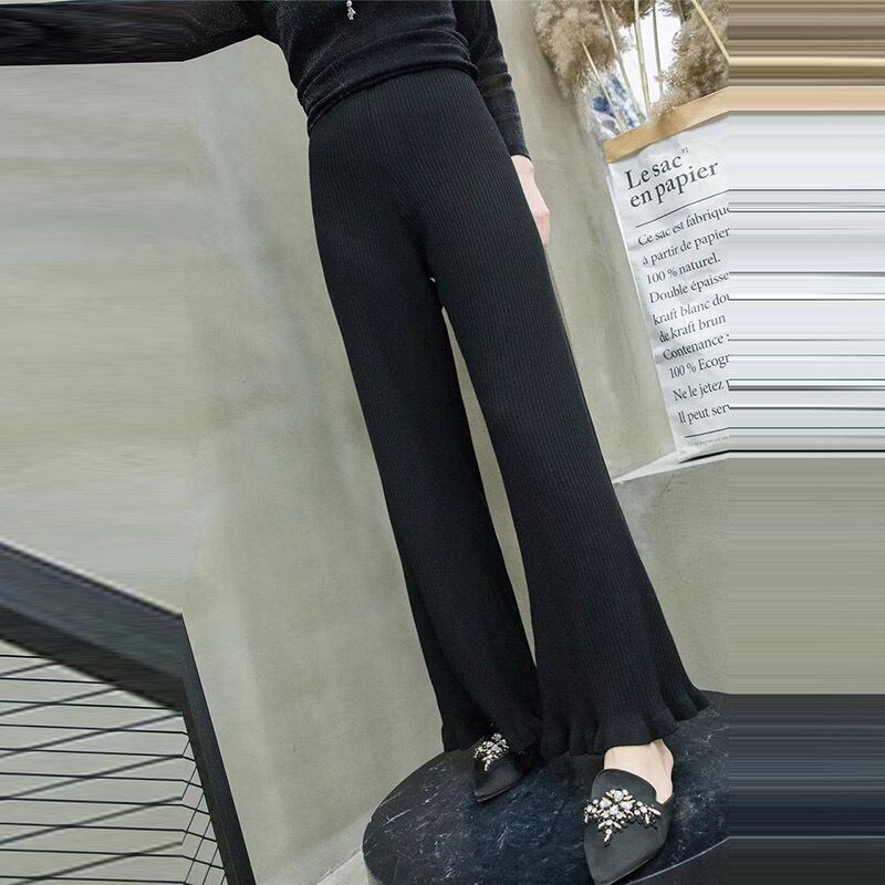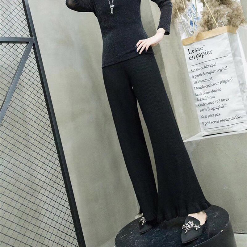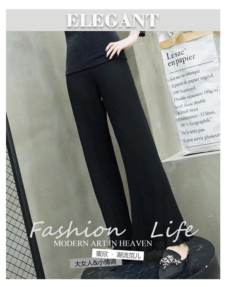 ウエスタンスタイルの初秋冬のお尻プラスサイズの婦人服新しいルーズでファットな姉妹ウールソルトヴィンテージニットワイドレッグパンツ ミックスインファッション80746965746