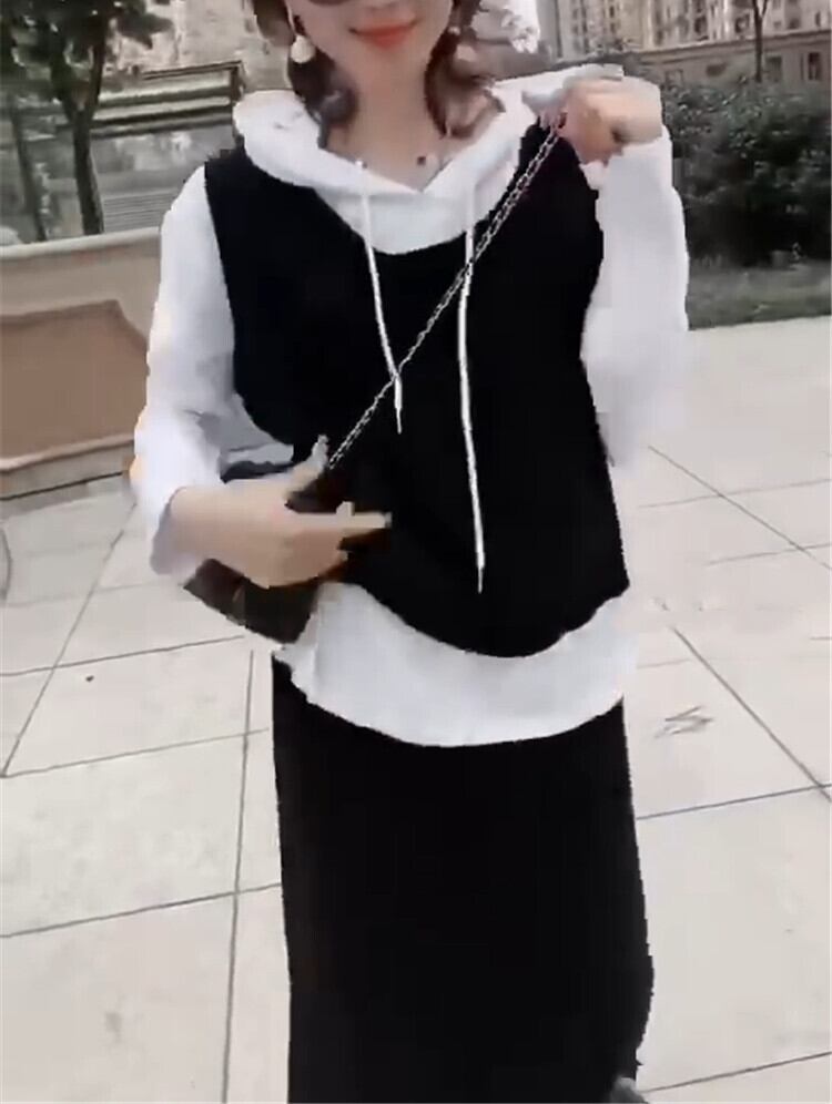 ベスト長袖Tシャツ2020年秋新作ファッションルーズスリーピーススーツファットmmスリミングブラウスプラスサイズ婦人服 ミックスインファッション93474256798