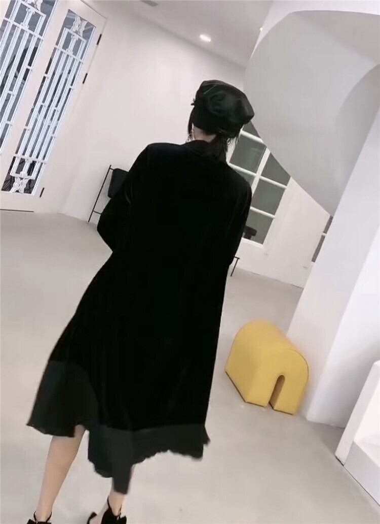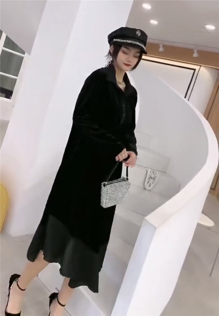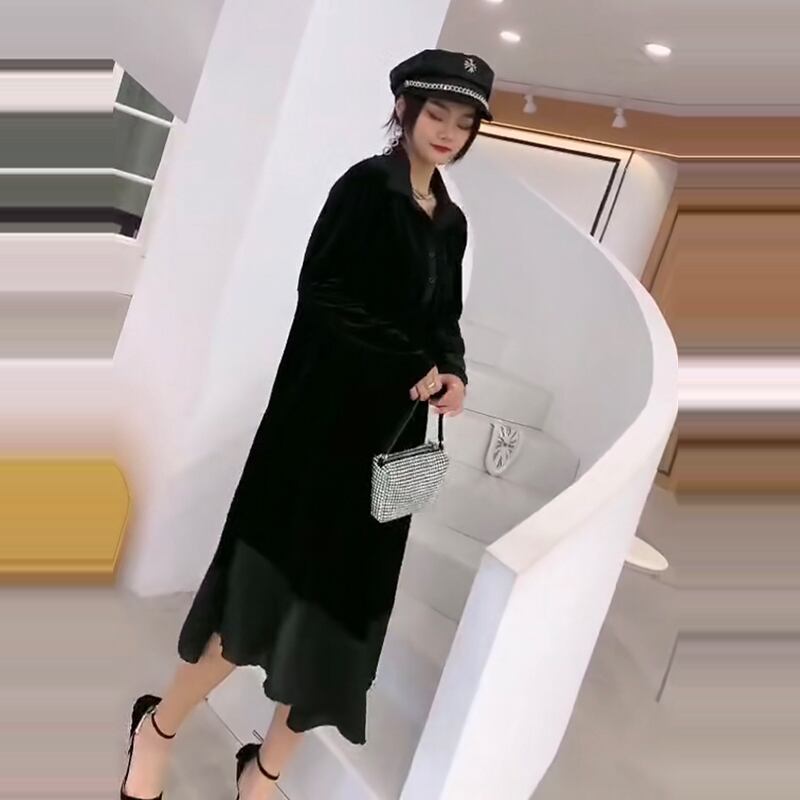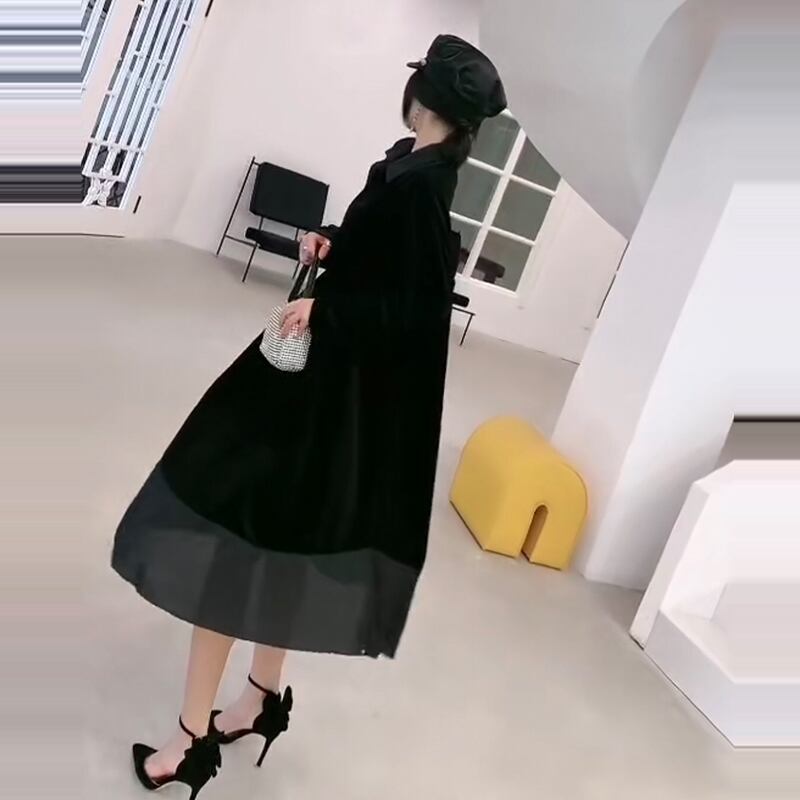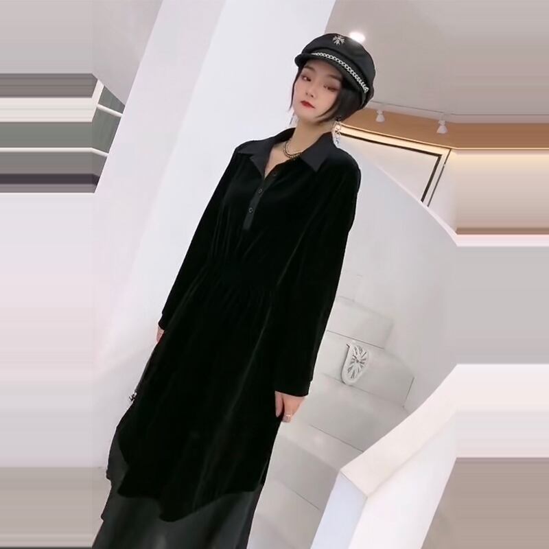 プラスサイズの女性の秋の太った姉妹mmわずかに太ったカバー腹減少年齢西洋スタイルのスカートラペルベルベット気質スリムドレス ミックスインファッション83672916540
