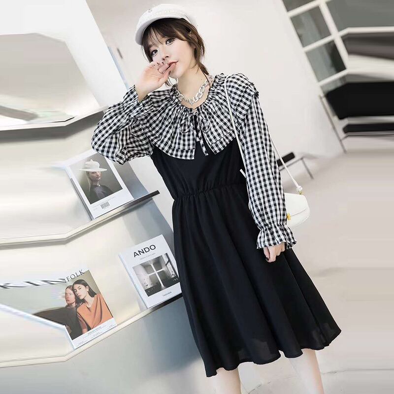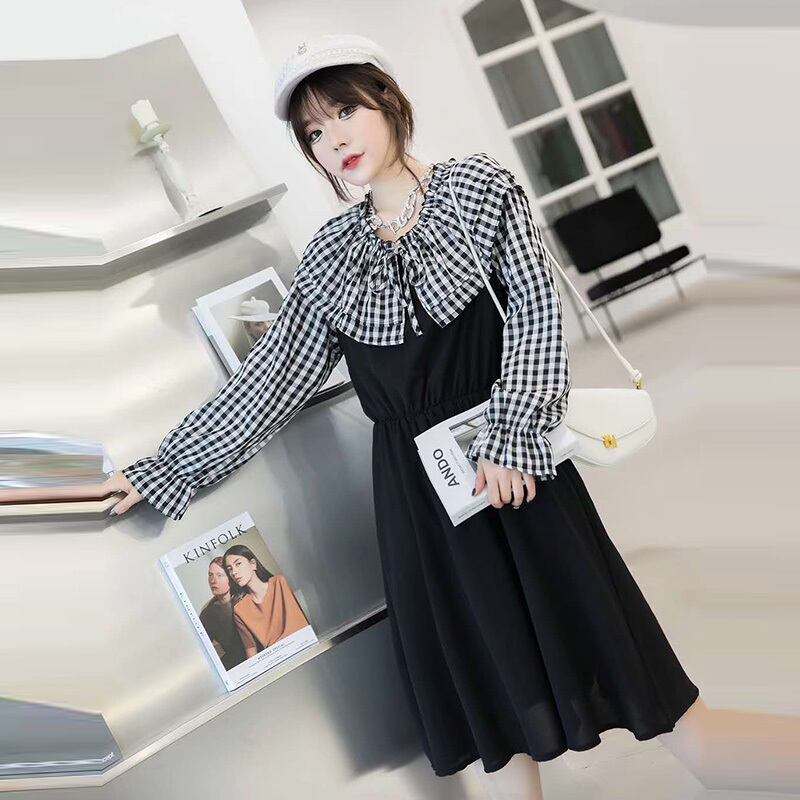 ファットmmスリムルーズドレスラージサイズ婦人服ファッション年齢削減気質チェック柄ウエストスカートバージョン潮をカバーする ミックスインファッション62439793921