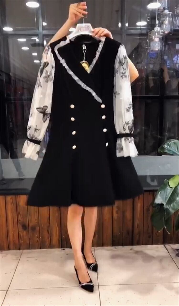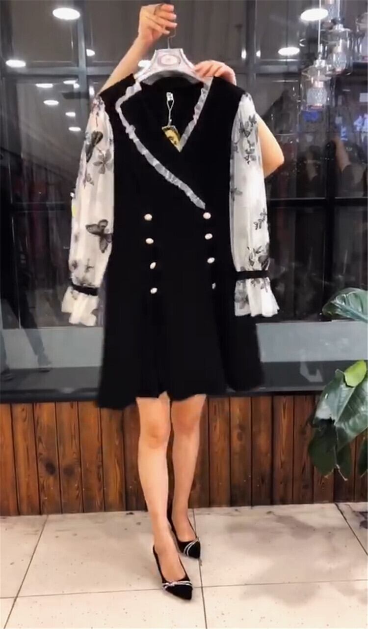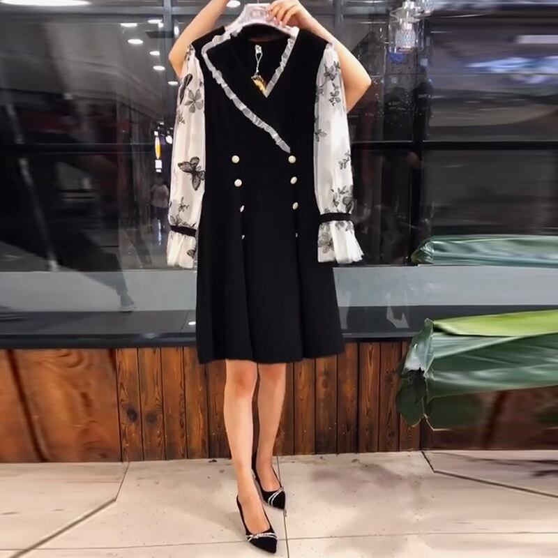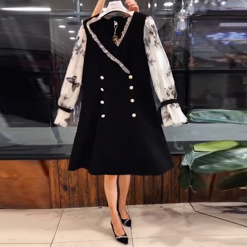 2020年の新しいプラスサイズの女性の太ったmmドレスは年齢を減らし、薄く、ダブルブレスト、ウエストと太く見え、秋の服を着ます ミックスインファッション88798964314
