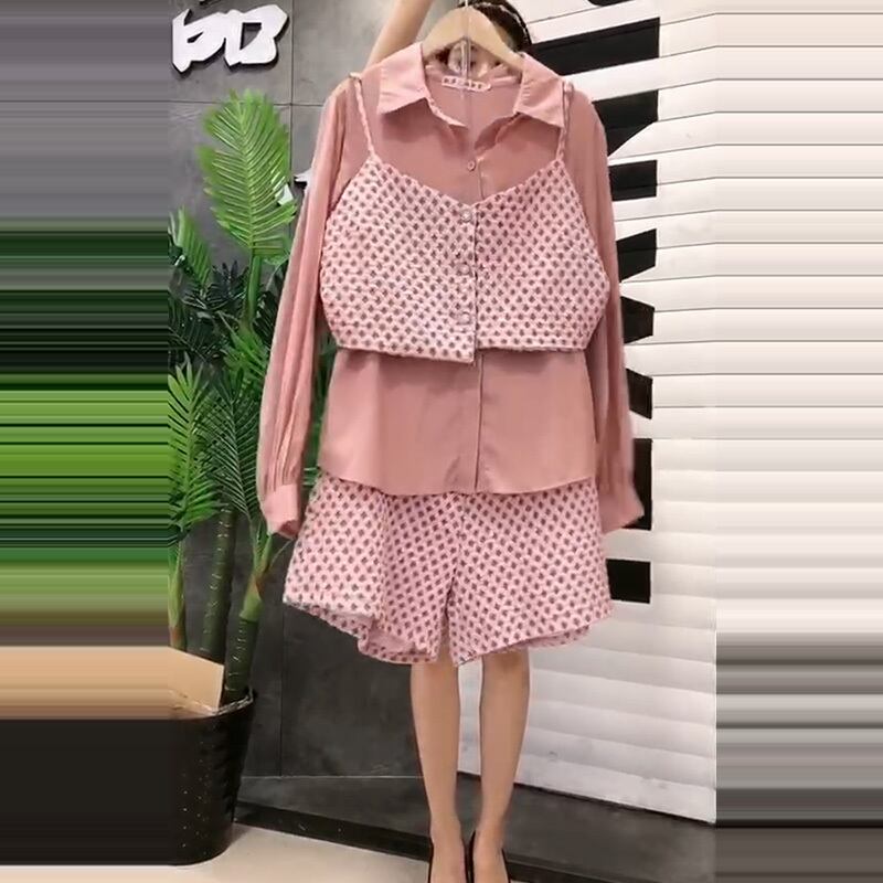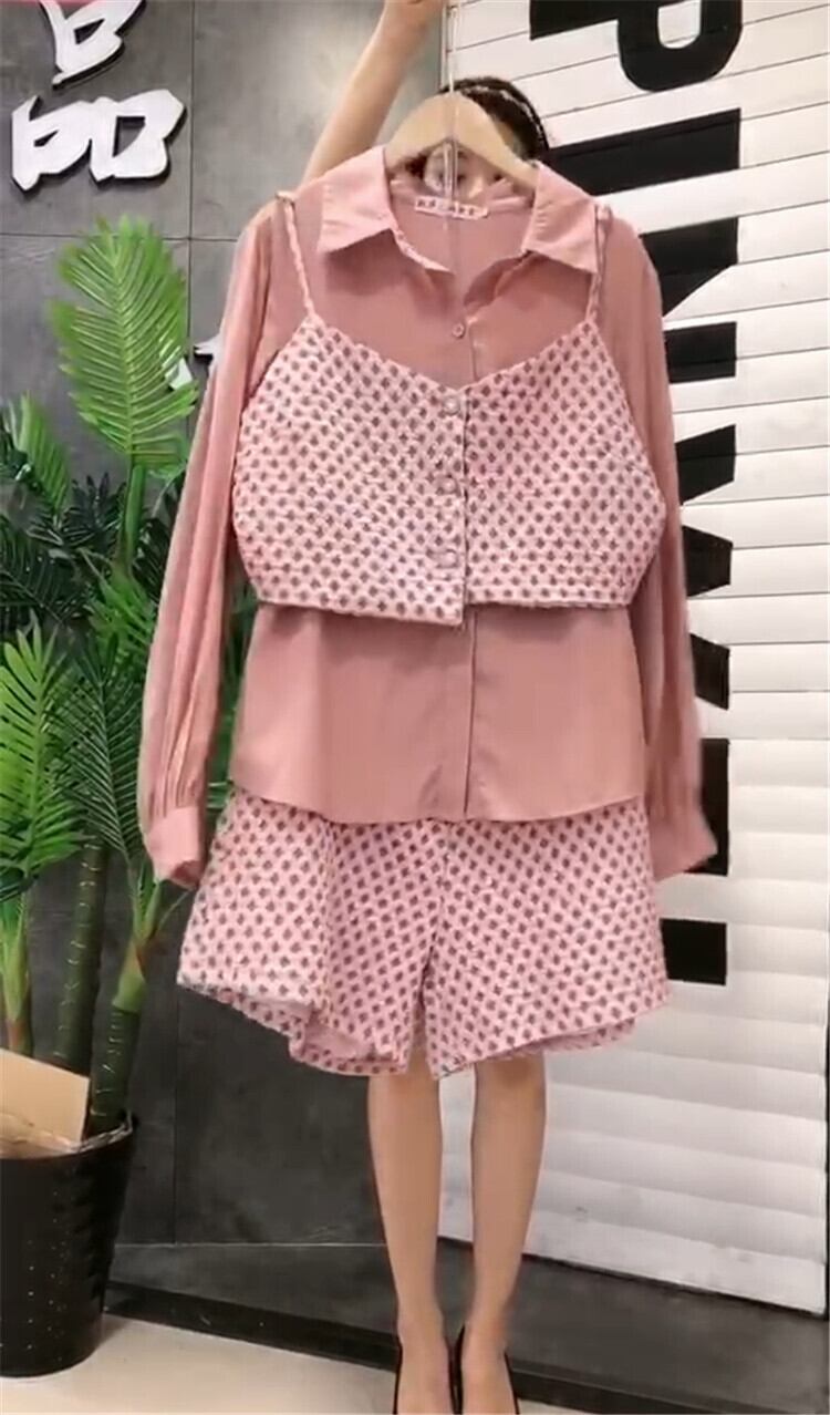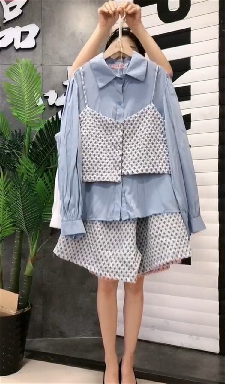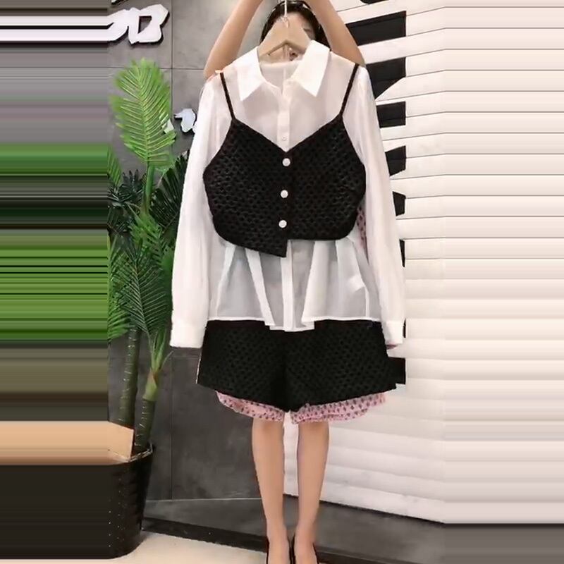 プラスサイズの女性用スリング長袖ファットmmルーズスリムシャツプラスファットプラスショーツスリーピーススーツプラスサイズトップタイド ミックスインファッション24794780288