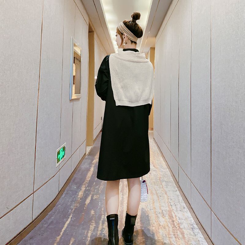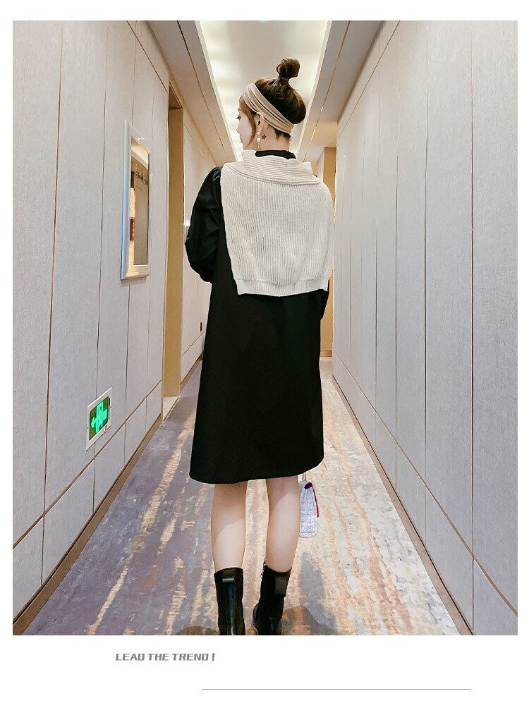 色:白と黒のショールのツーピーススーツ,ツーピース黒米ショール,カーキ2点セット