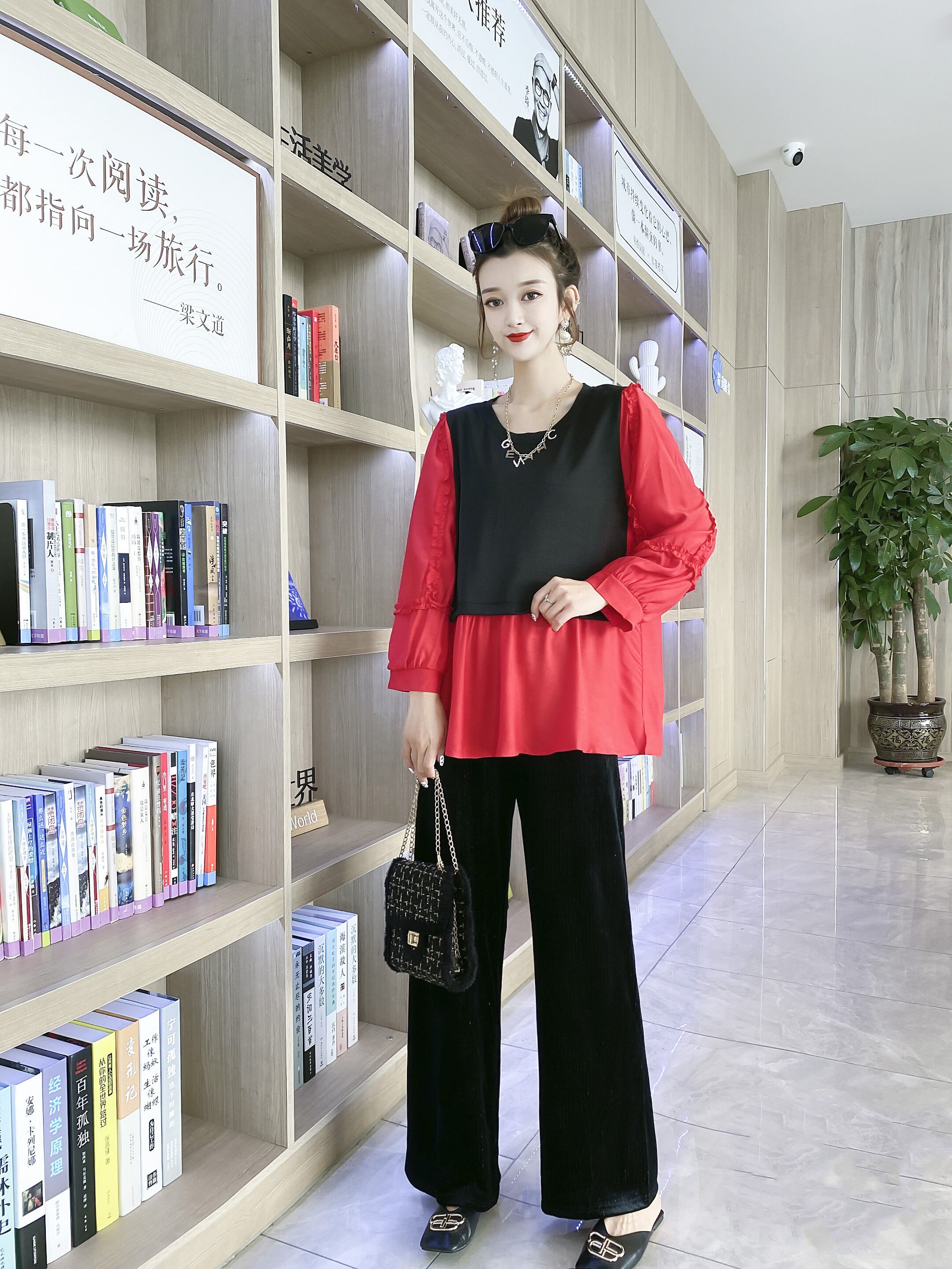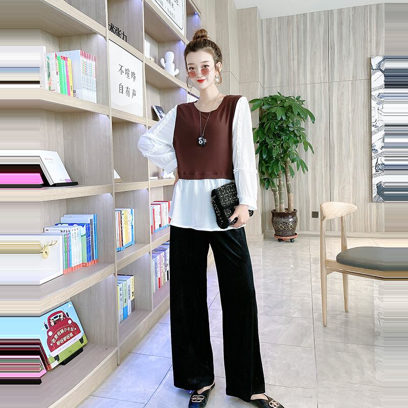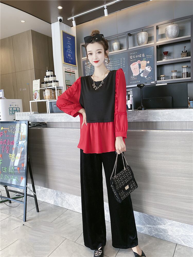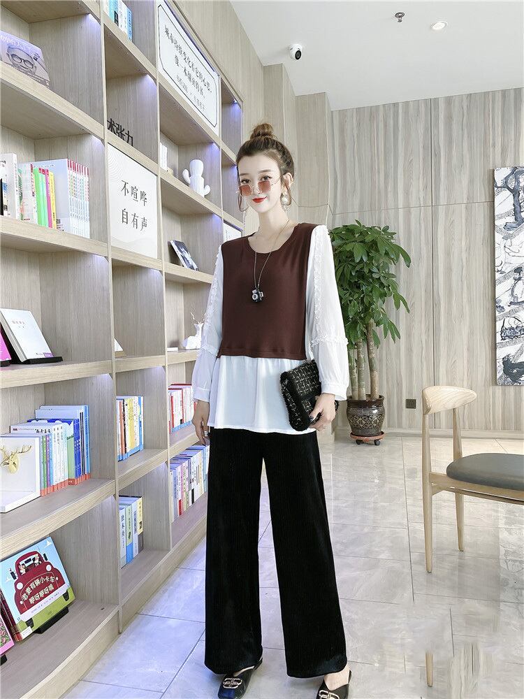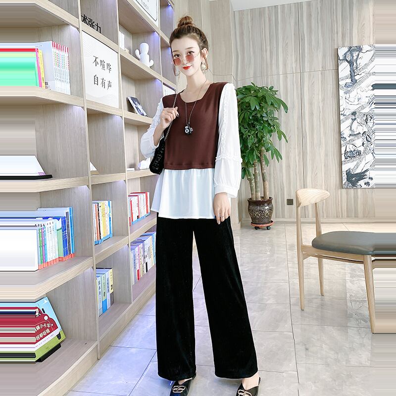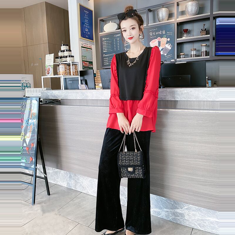 2020年の新しい長袖Tシャツ200kgファットmmルーズで薄いプラスサイズのレディーストップス秋のツーピースワイドレッグパンツトレンド ミックスインファッション6032631494