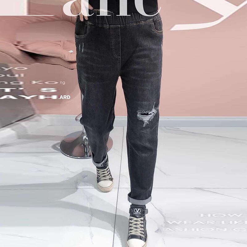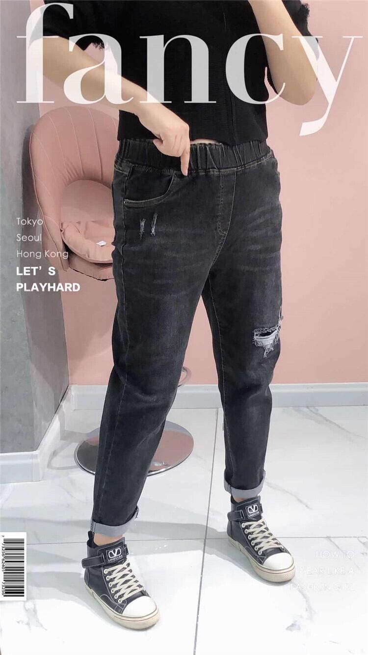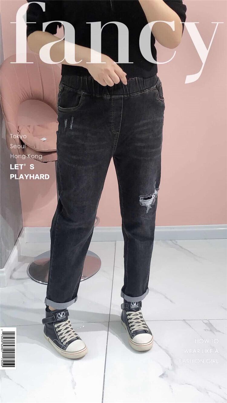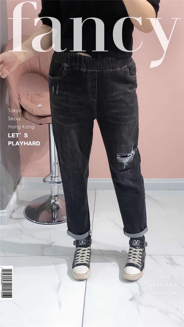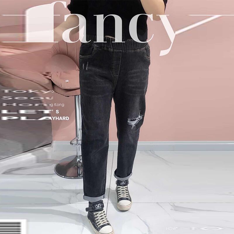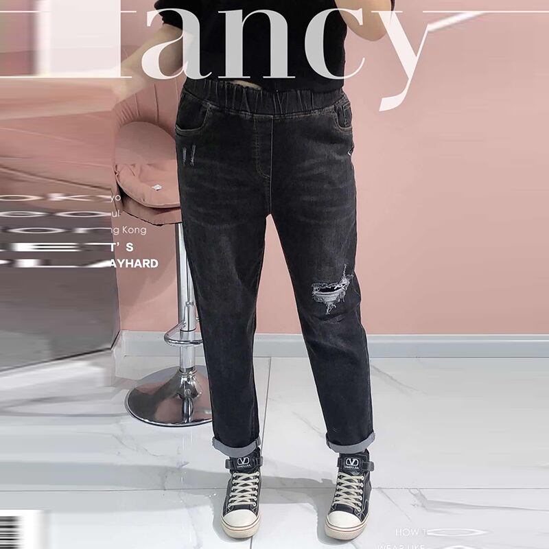 プラスサイズの女性のズボン秋破れたジーンズ脂肪mmハイウエストルーズスリム黒足パンツ脂肪姉妹潮 ミックスインファッション66793223482