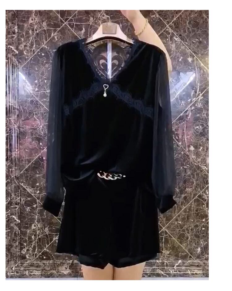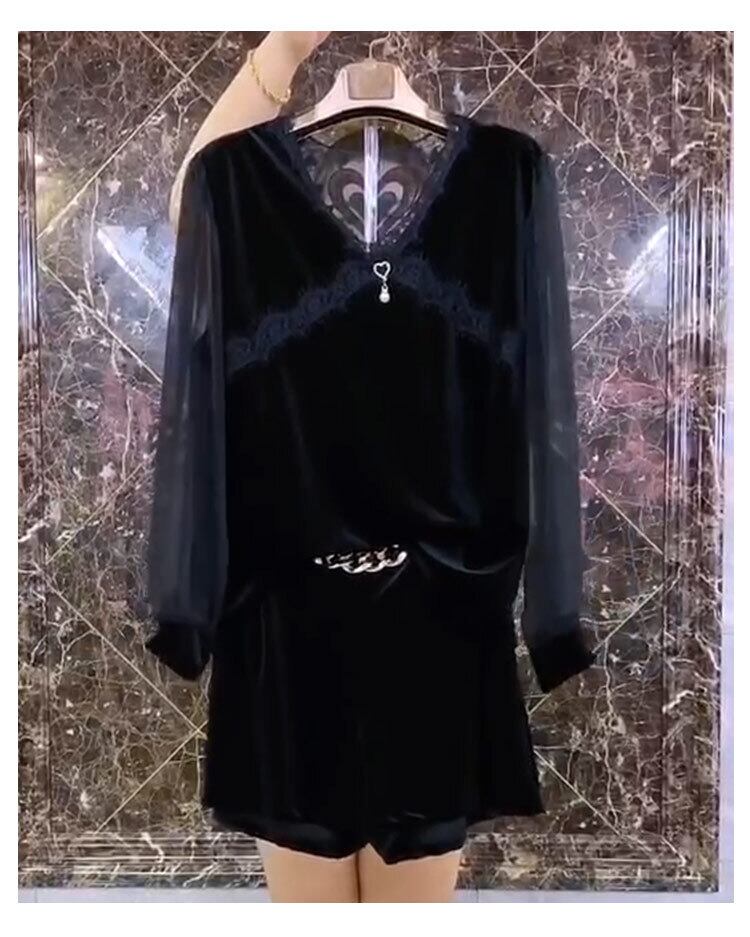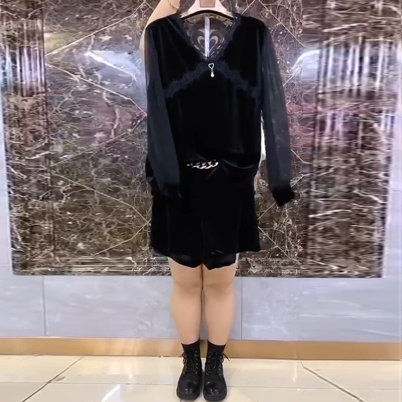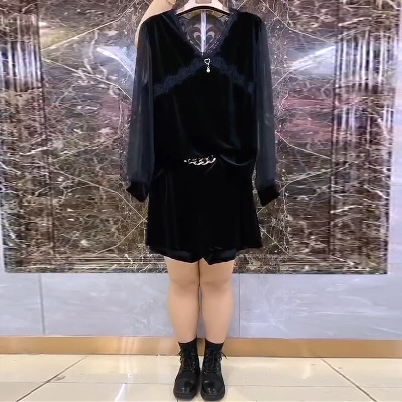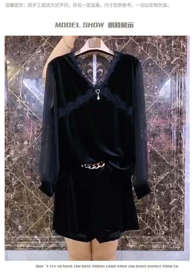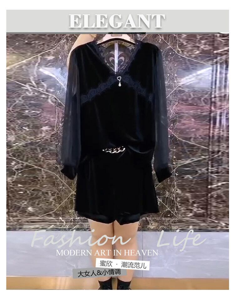 ラージサイズレディースウエスタンスタイルTシャツトップハイウエスト200kgファットMMデザインセンスレディースパンツネットヤーンボトミングシャツシンショーツ ミックスインファッション70795793292