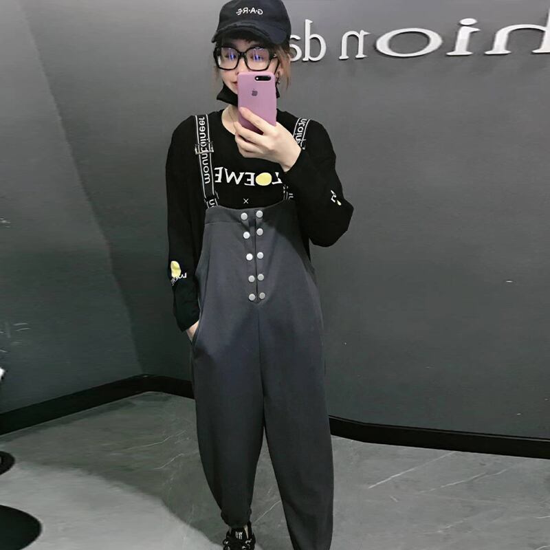 ルーズプラスサイズのデニムオーバーオールレディースファットmmTシャツトップスファットシスターパンツは細くてハイウエストのパパパンツ ミックスインファッション9209824866