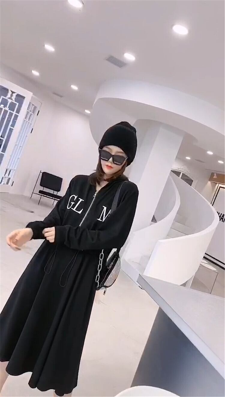 2020年秋新しいプラスサイズの女性の脂肪mm年齢削減痩身軽い成熟したスタイルのフード付きレタードレス秋 ミックスインファッション30376016609