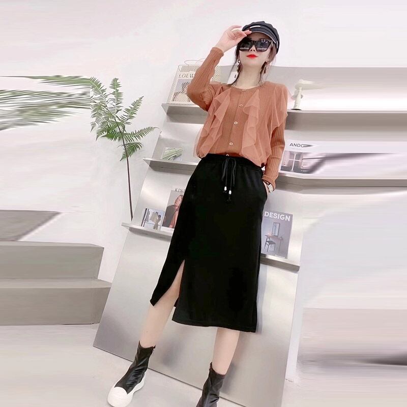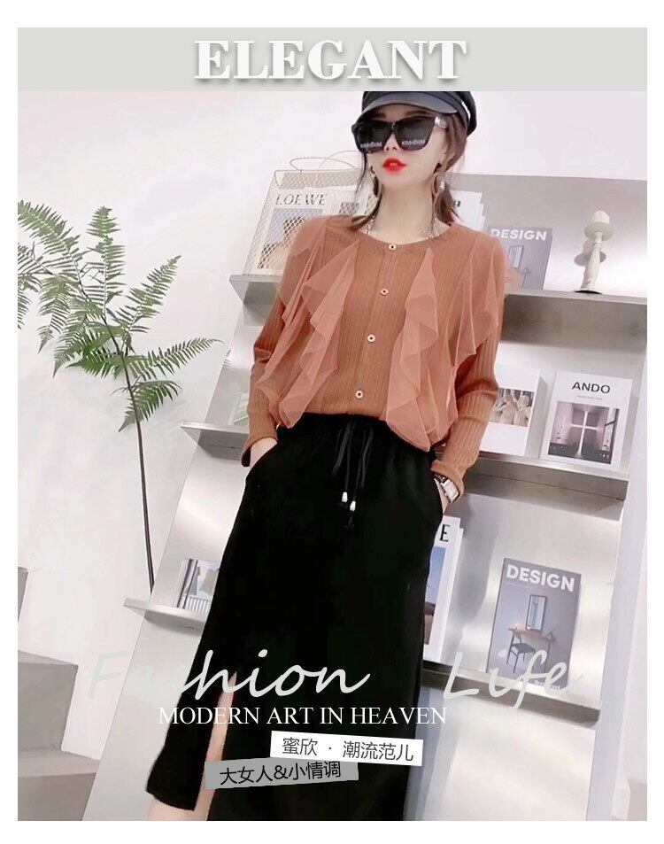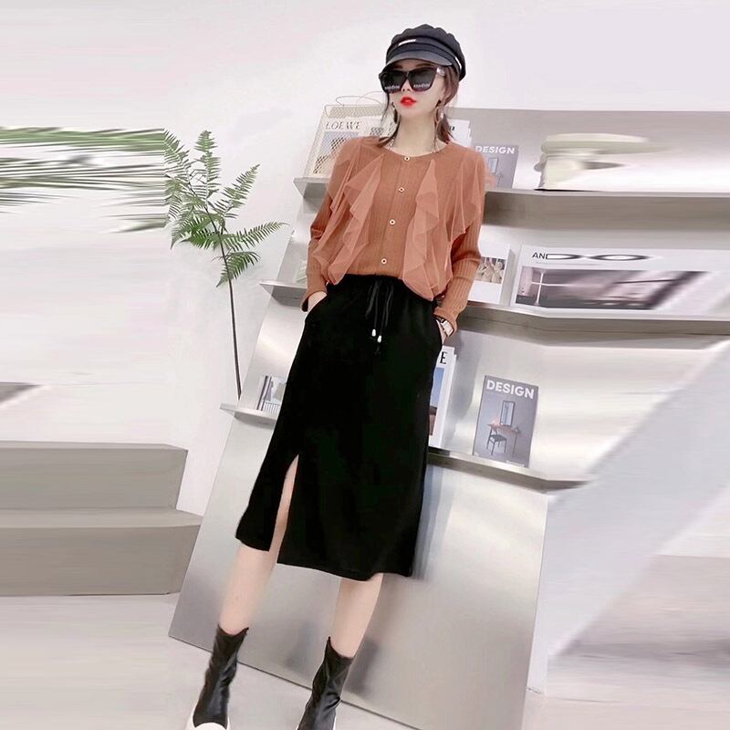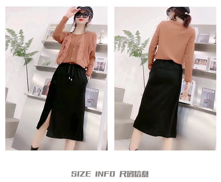 ボトミングシャツ付きのラージサイズの秋バージョン、女性の脂肪MMは薄く、デザインセンス、長袖Tシャツ、スリムなトップスカート ミックスインファッション29088119495