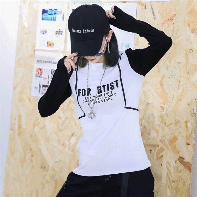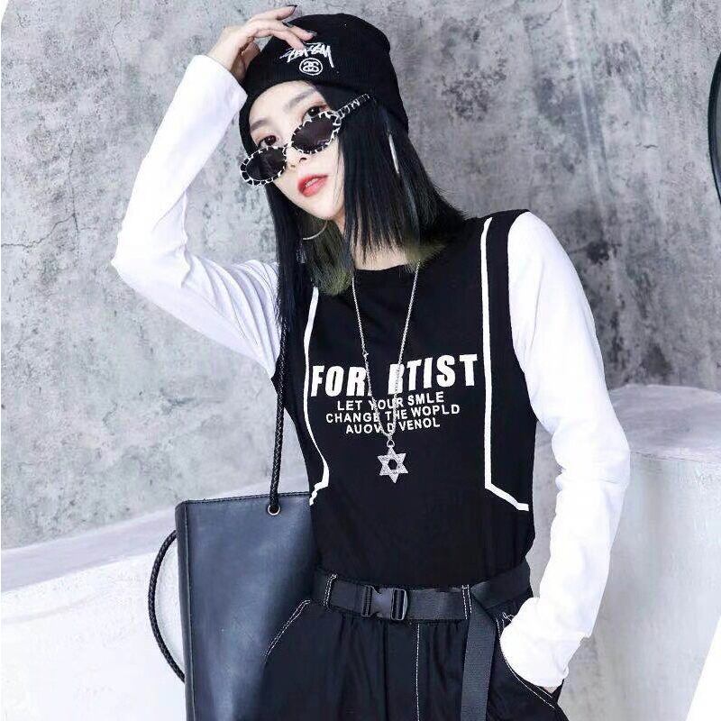 ファットシスター秋カジュアルウエスタンレタージャケットお腹ワイルドラウンドネックルーズプラスサイズレディース薄Tシャツ ミックスインファッション45295604144
