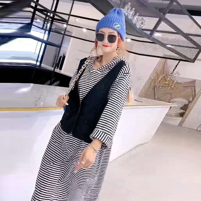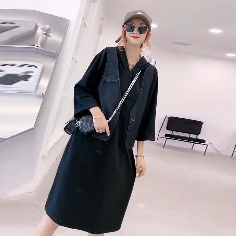 2020年秋新作レディースプラスサイズファットmmスリムフードドレス、ライトクックスタイルフェイクツーピーススーツ ミックスインファッション28917592554