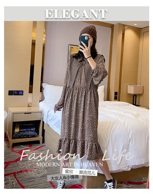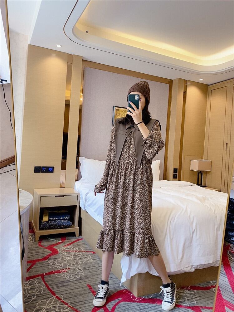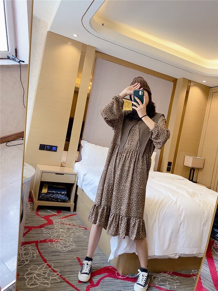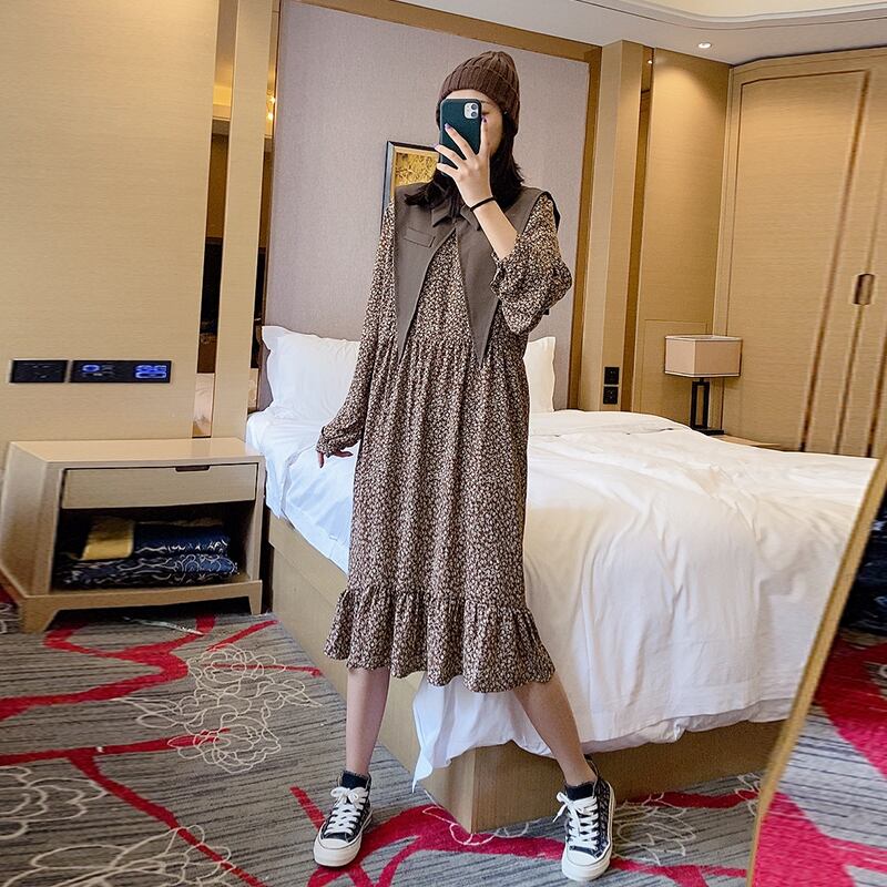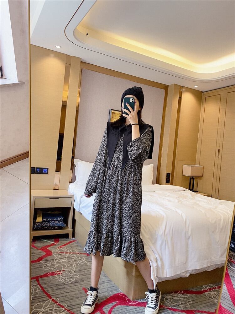 プラスサイズの女性の秋の太った姉妹mmのツーピーススカートは肉を覆い、年齢を減らし、薄く見え、腹の花柄のドレスを覆います ミックスインファッション6297195348