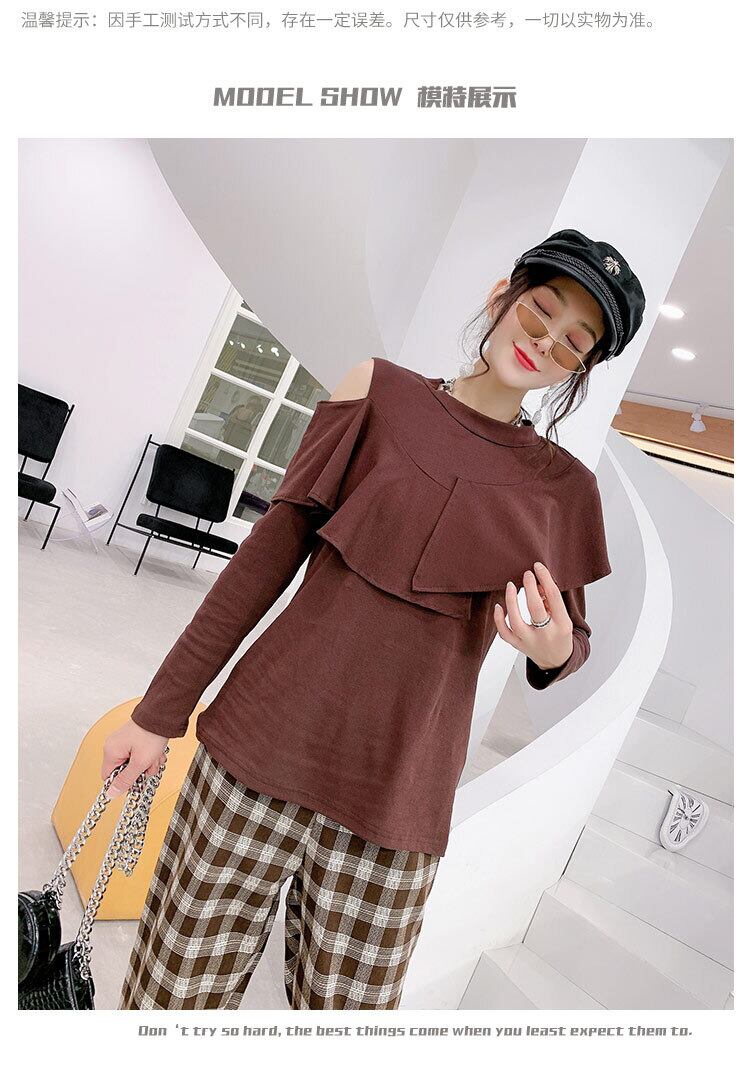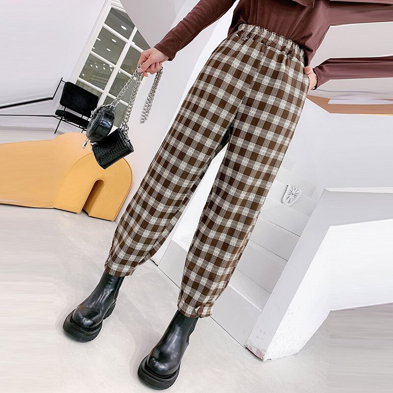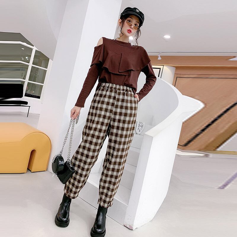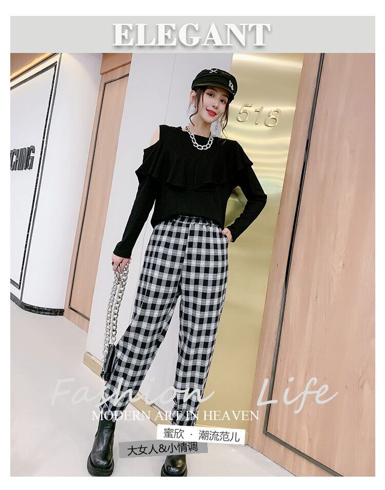 2020年秋プラスサイズレディースニューファットmmスリミングトップルーズシンプルTシャツボトミングシャツチェック柄カジュアルパンツレディース ミックスインファッション46343461661