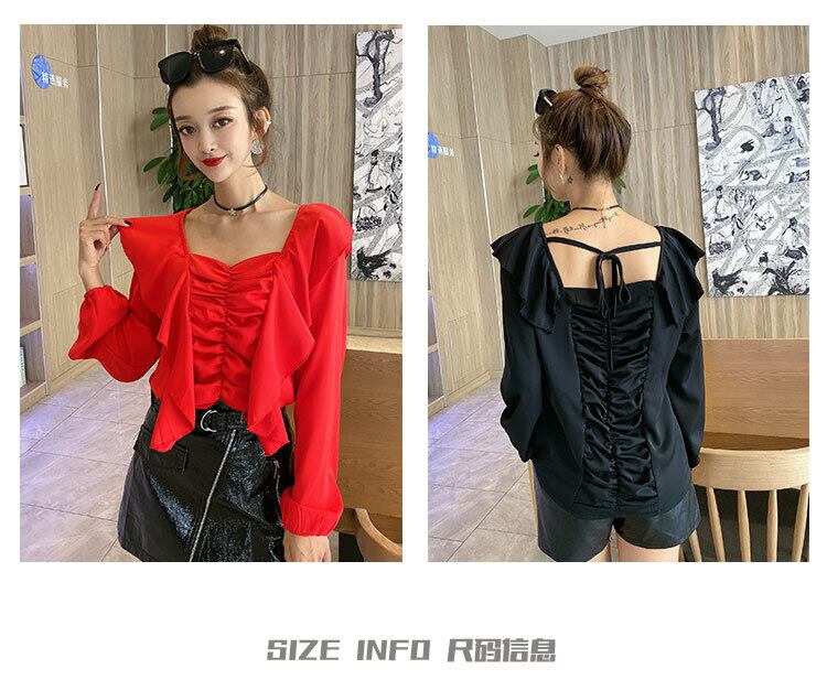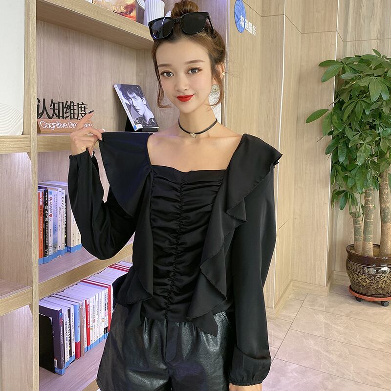 200kgプラスサイズ婦人服ファットmm秋ニュースタイルウエスタンスタイルスリミングスクエアカラートップファットシスター長袖Tシャツトレンド ミックスインファッション59318888803