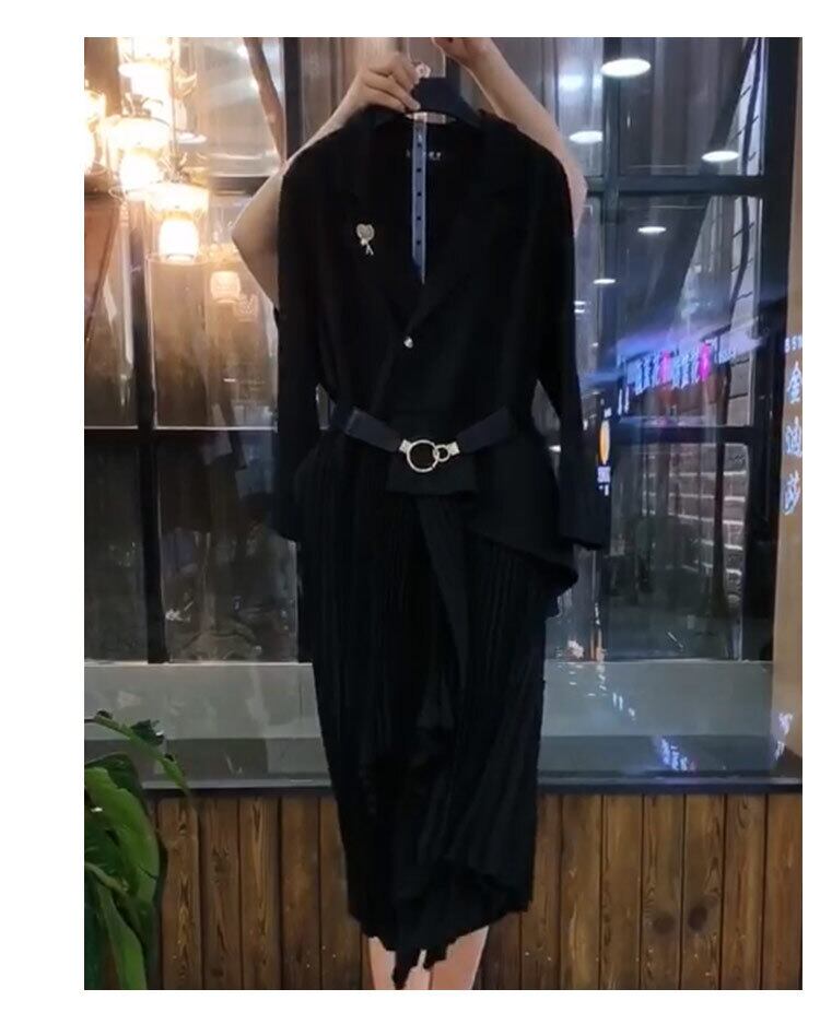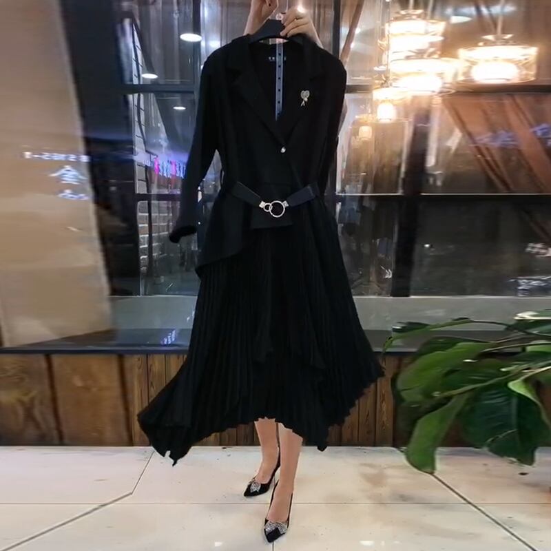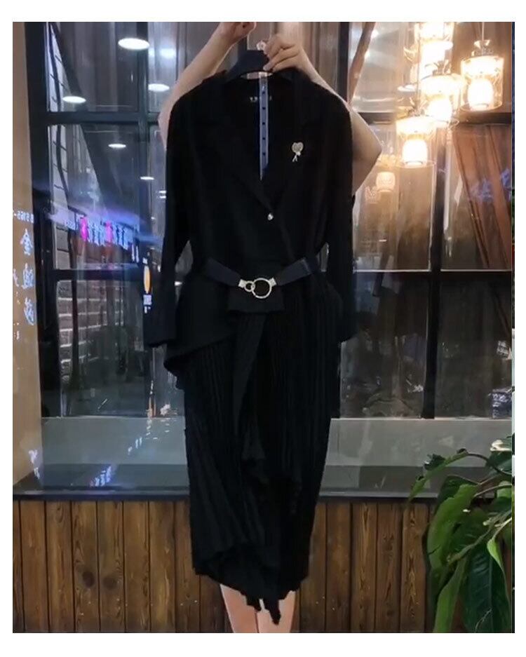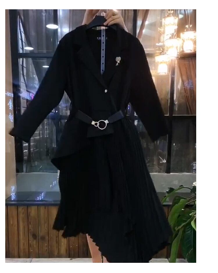 ファットシスターベルトドレスプラスサイズの女性の秋の新バージョンルーズで薄いプリーツスカートの潮 ミックスインファッション42142734679