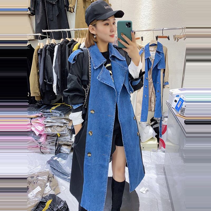 ウインドブレーカー2020新しいミドル丈プラスサイズの女性のウエスタンスタイル200kg脂肪MM秋のロングデニムコートジャケット ミックスインファッション26673987204