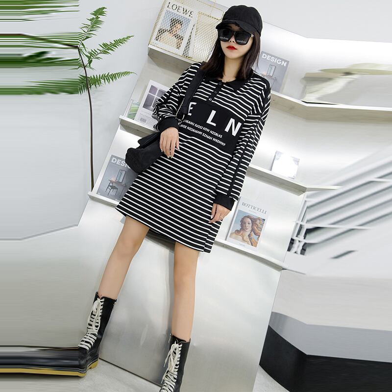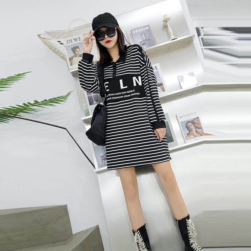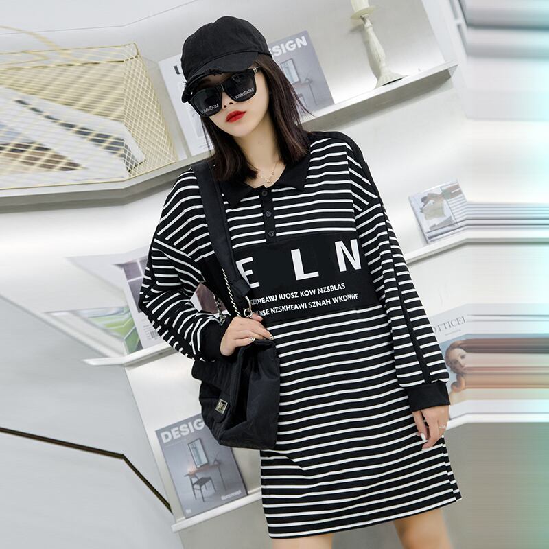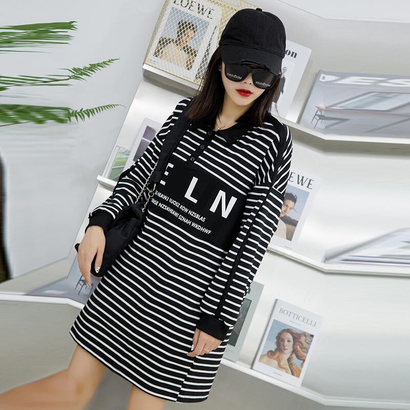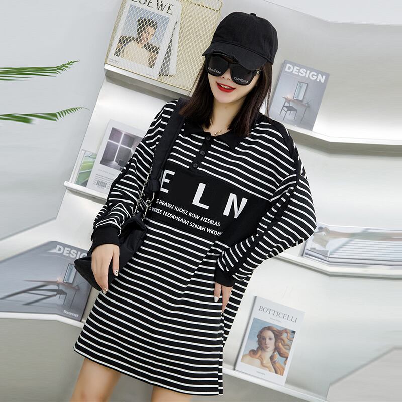 ストライプドレス秋プラスサイズ脂肪mmは薄いカバーミートスカート文字プラス脂肪でファッションラペルを増やす西洋のトレンド ミックスインファッション70429415193