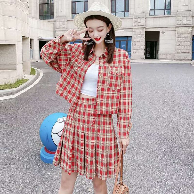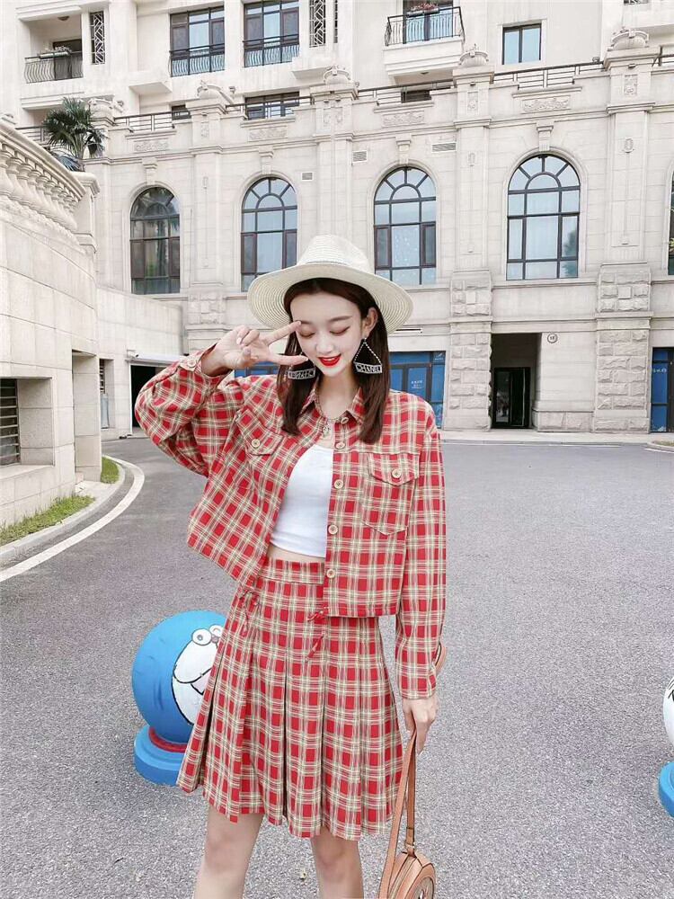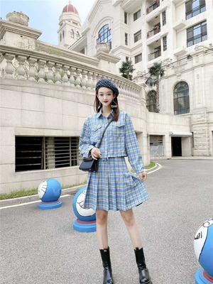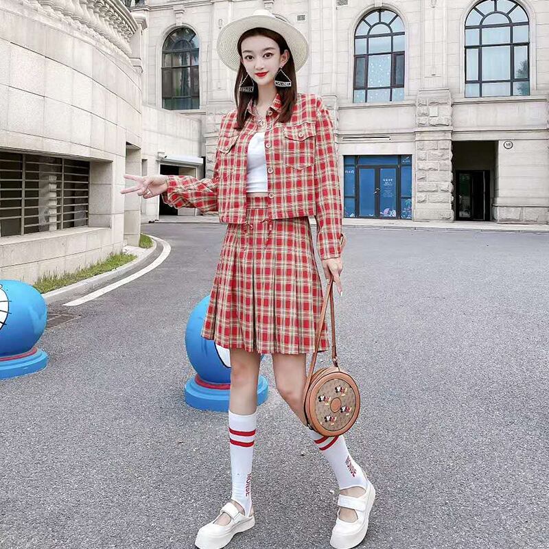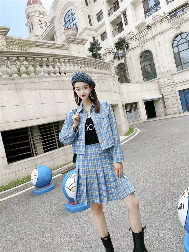 2020年秋プラスサイズレディースニュースタイルスモールフレグランスハーフレングススカートファットmmスリミングウエスタンスタイルチェック柄ジャケット ミックスインファッション412224252