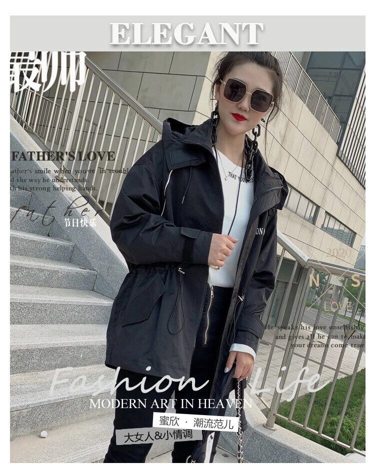 秋の新しいラージサイズの女性の脂肪mm200kgルーズで薄いフード付きウインドブレーカージャケット年齢減少ウエストウエストトップ ミックスインファッション89514063999