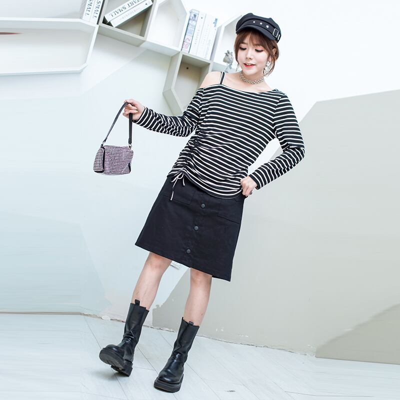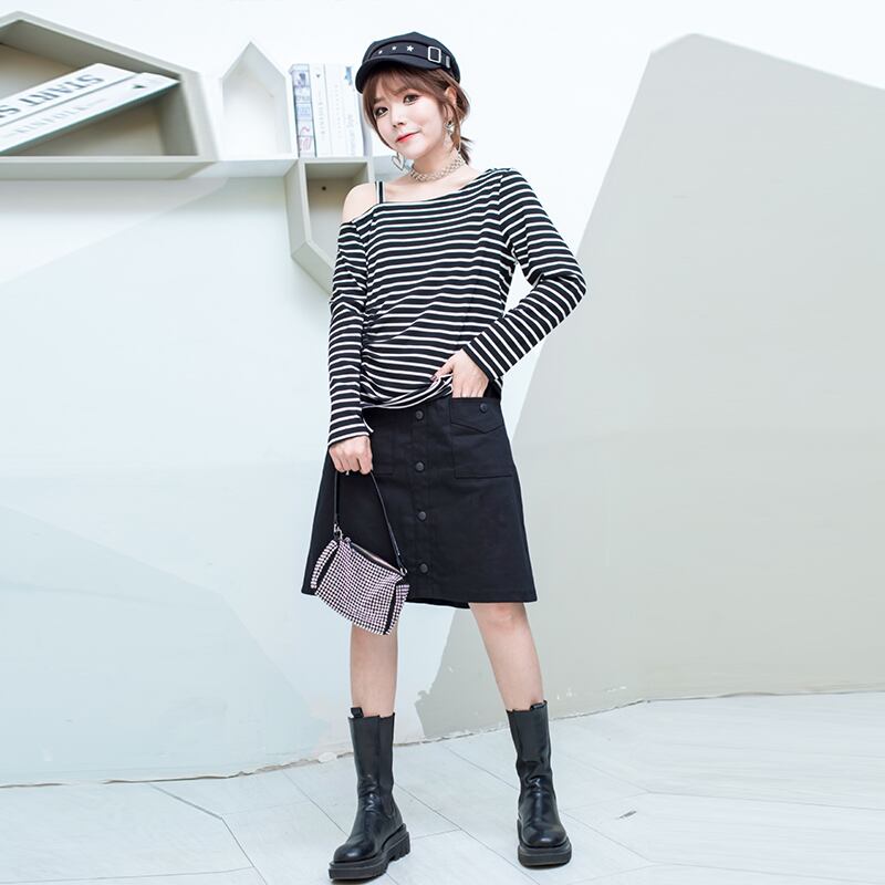 2020プラスサイズの女性の太った姉妹ストライプTシャツツーピーススーツウエスタンスタイルのスーツ年齢の削減とスリムなmmスカートのトレンド ミックスインファッション34130450355