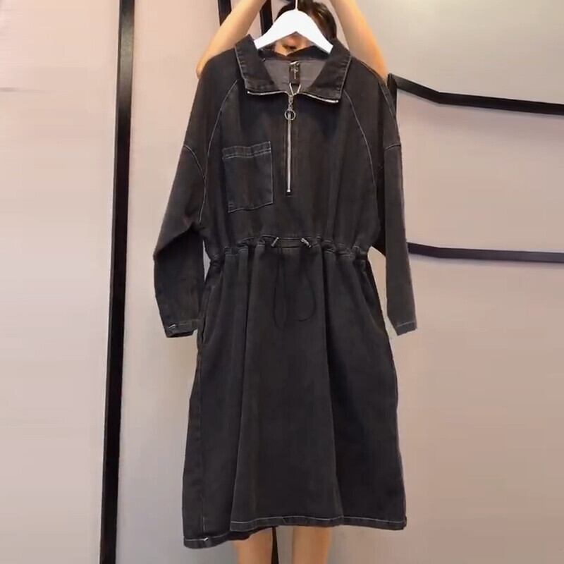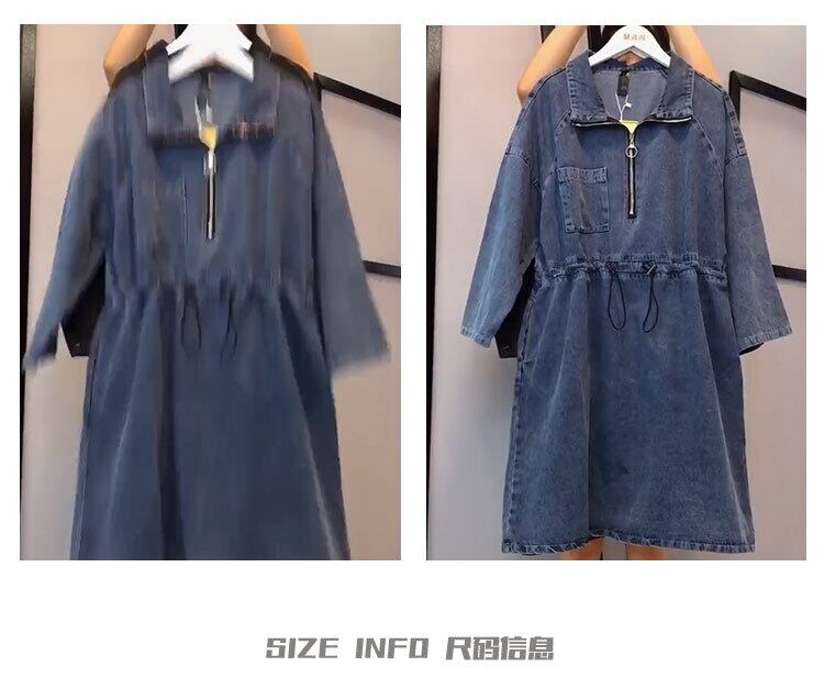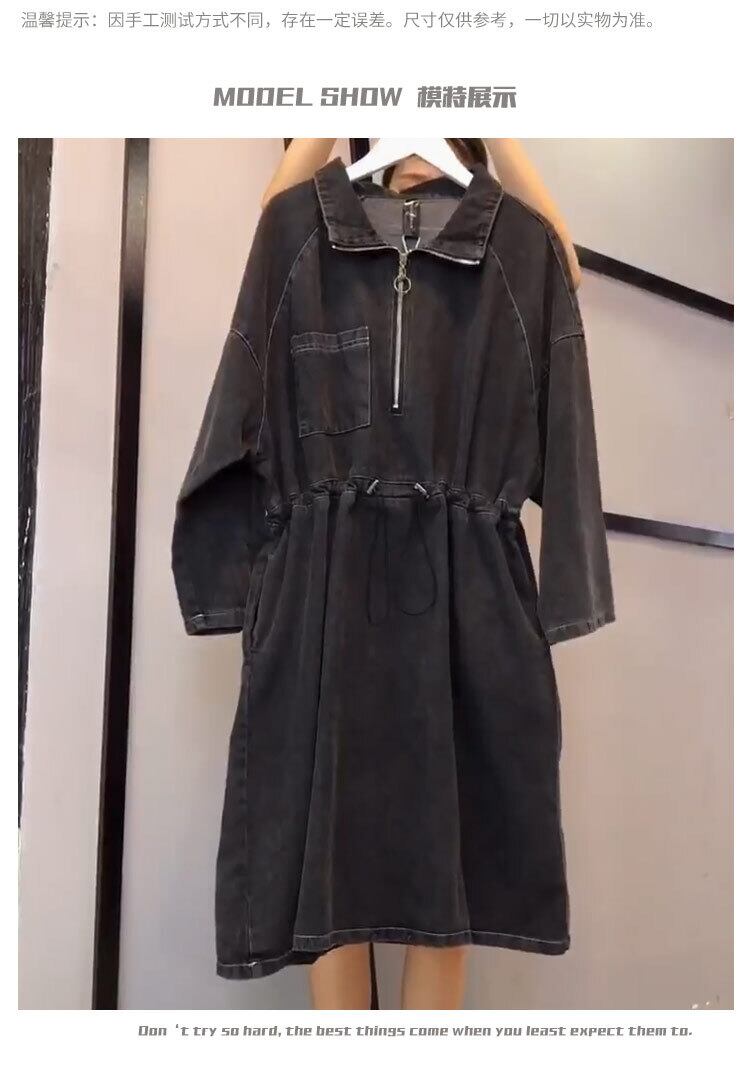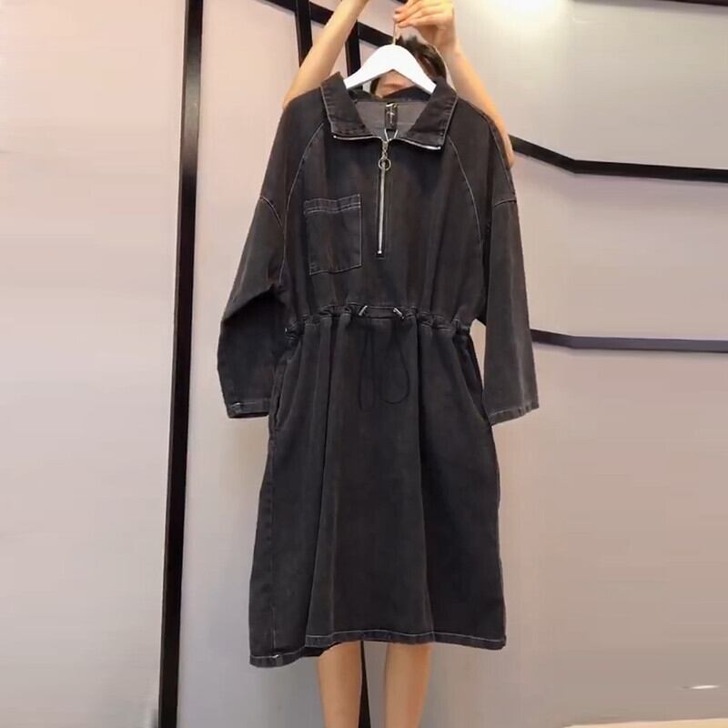 プラスサイズの女性の2020年秋の新しい太った姉妹痩身腹ラペルジッパーデニムミドル丈ドレス ミックスインファッション748922249