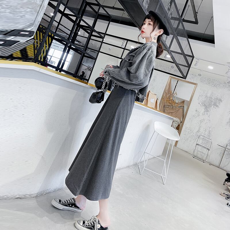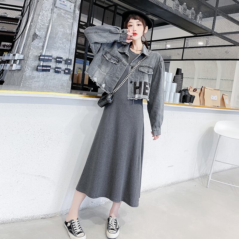 2020年秋新作レディースプラスサイズファットmmツーピーススーツウエスタンスタイルスリングドレスデニムジャケットスリム ミックスインファッション4468624558