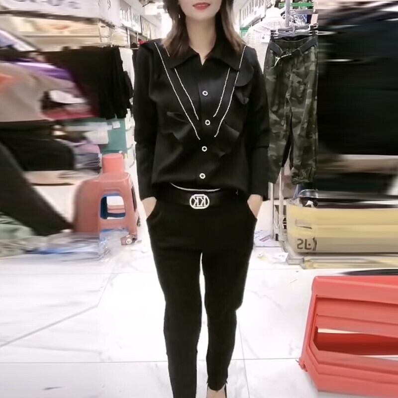 ファットウェアとファットシスター秋ニュースタイルラージサイズスリミングシャツ、ウエスタンスタイルパンツツーピーススーツ女性に合わせて ミックスインファッション26571657869