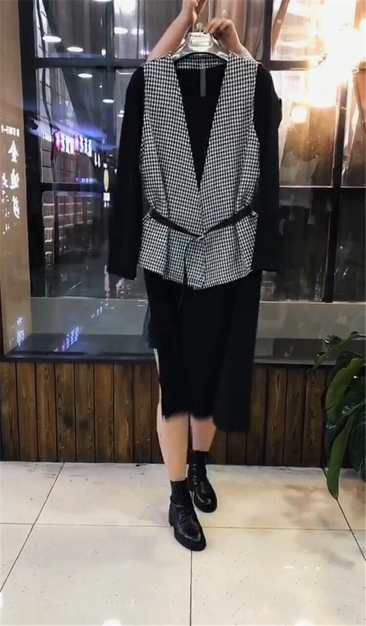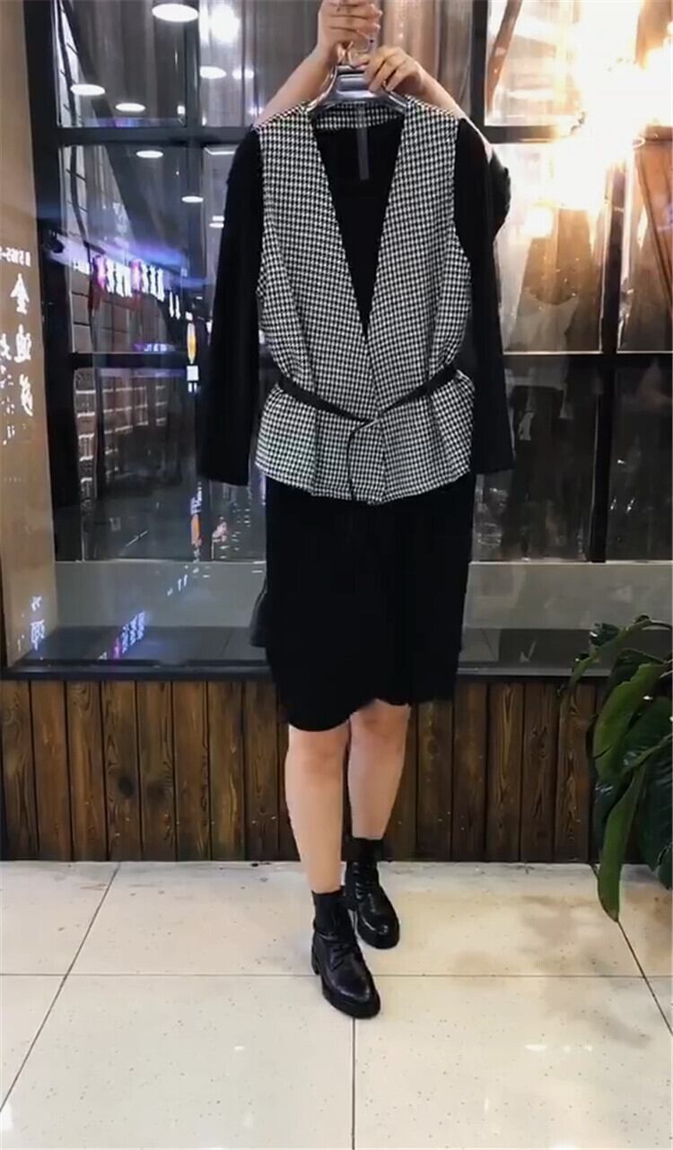 色:チェックのベストと黒のドレスのツーピーススーツ