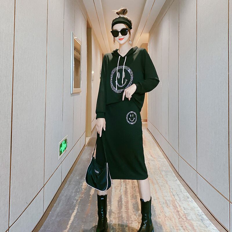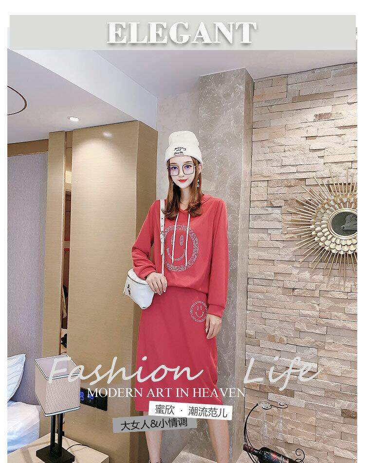 2020年秋新しいプラスサイズの女性のウエスタンスタイルの年齢を減らすセーターツーピーススーツ、太いMMは薄く、スカート、ファッショナブルでした ミックスインファッション64670052547