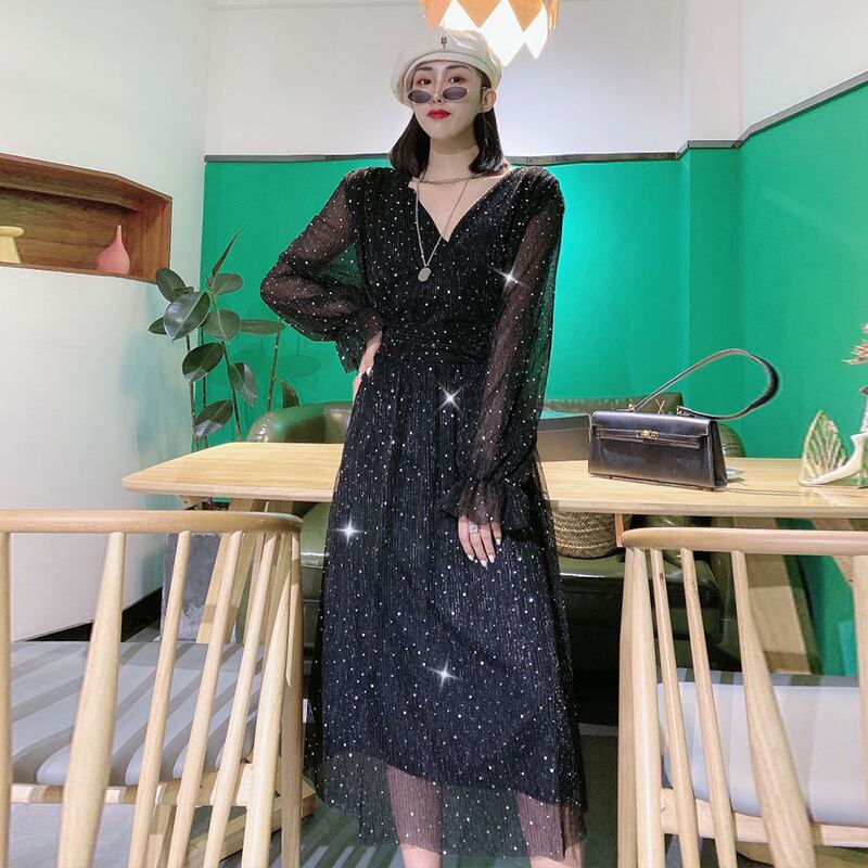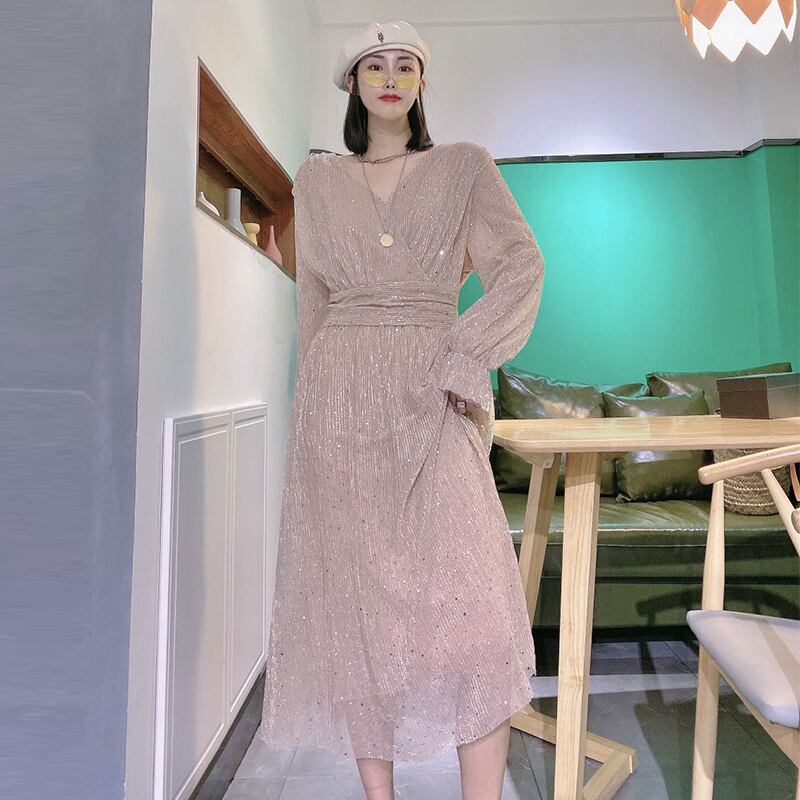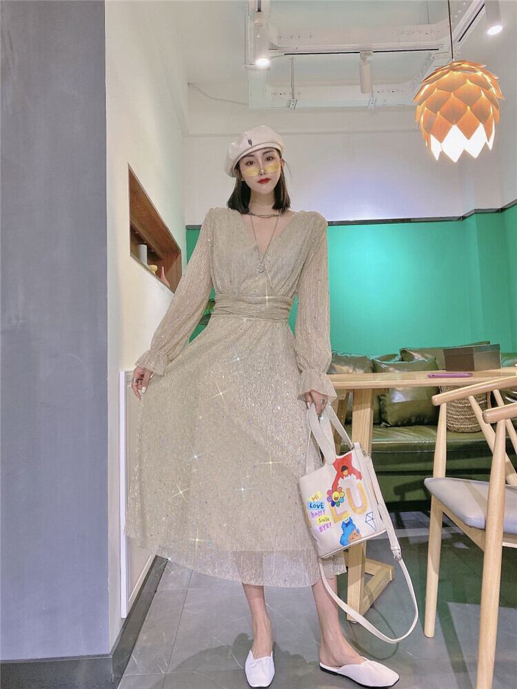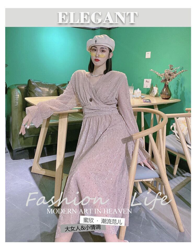 ファッショナブルな明るいシルクのルーズドレスを増やすための秋の新しい長袖プラスサイズの女性のミドル丈プラス肥料の2020バージョン ミックスインファッション28453023468