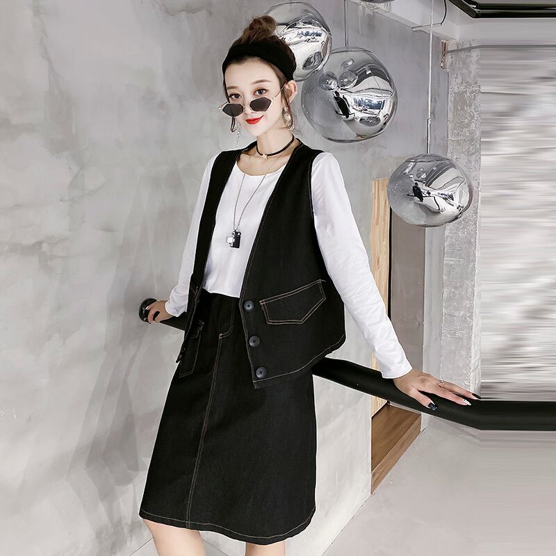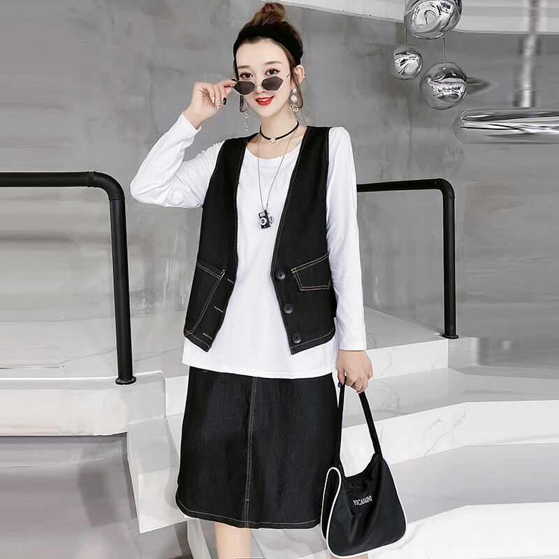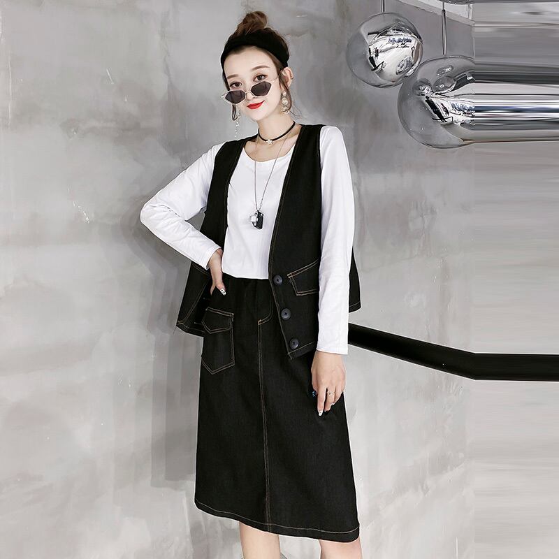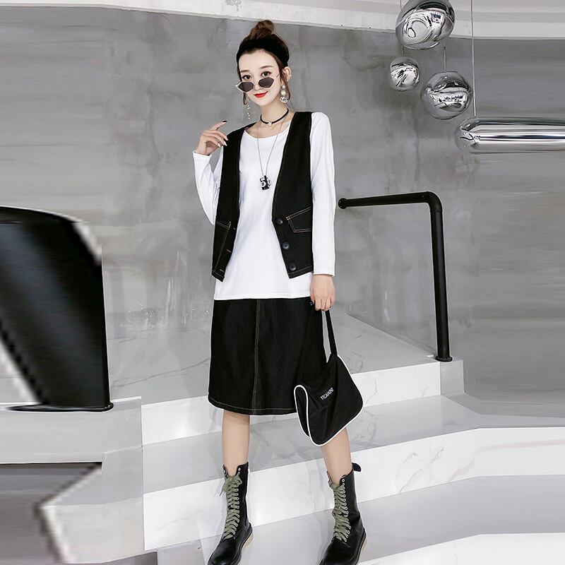 秋冬服2020新しいプラスサイズの女性の脂肪mm痩身スリーピーススーツ洋風バストスカートチョッキ ミックスインファッション50184662150