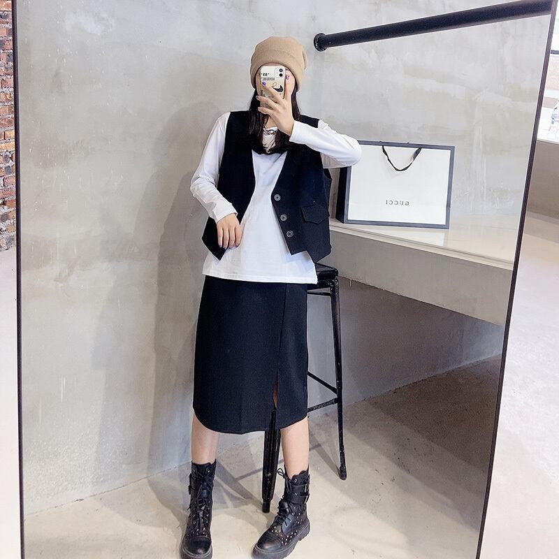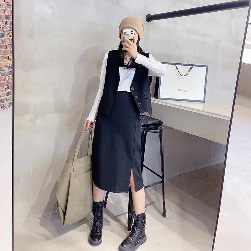 プラスサイズの女性の2020年秋の服新しい太った姉妹は薄い洋風ベストスカート初秋のスリーピーススーツに見えます ミックスインファッション68243815416