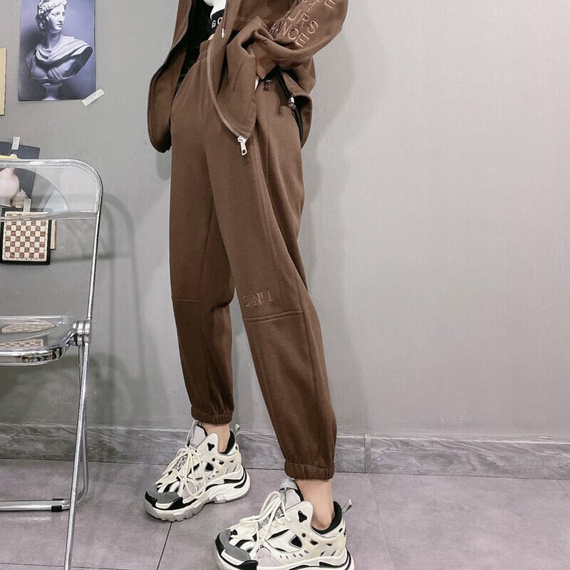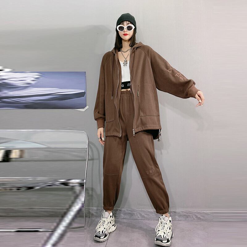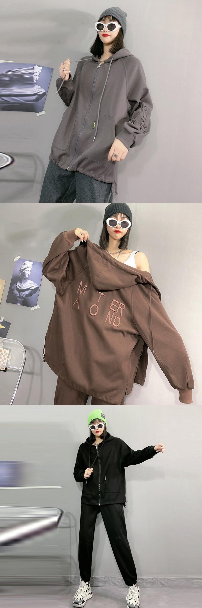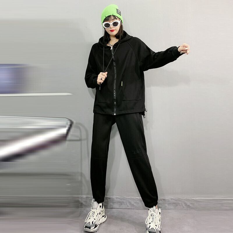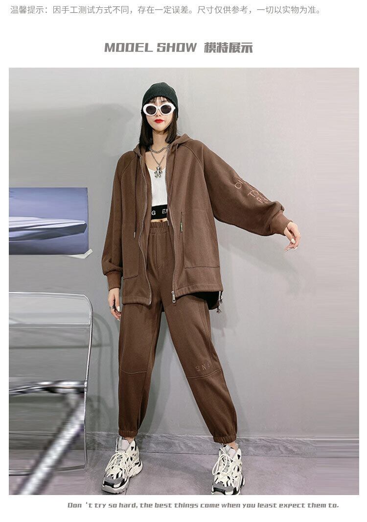 秋の新しいスタイルプラスサイズの女性の脂肪mm200kgルーズで薄いフード付きジャケット年齢削減カジュアルレタートップス女性のパンツ ミックスインファッション69817040667