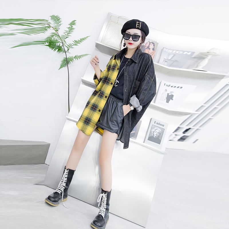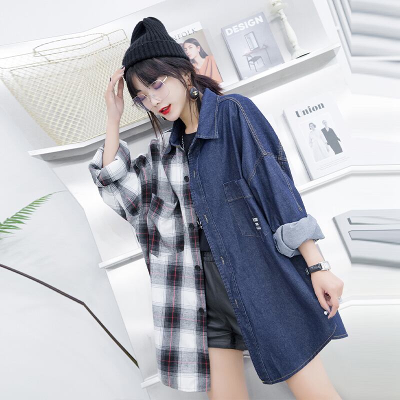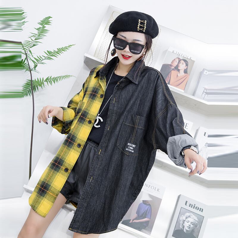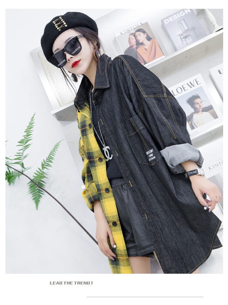 プラスサイズレディースシャツチェック柄ステッチ2020秋新作200kgデニムジャケットファットシスターMM薄秋 ミックスインファッション51718256139
