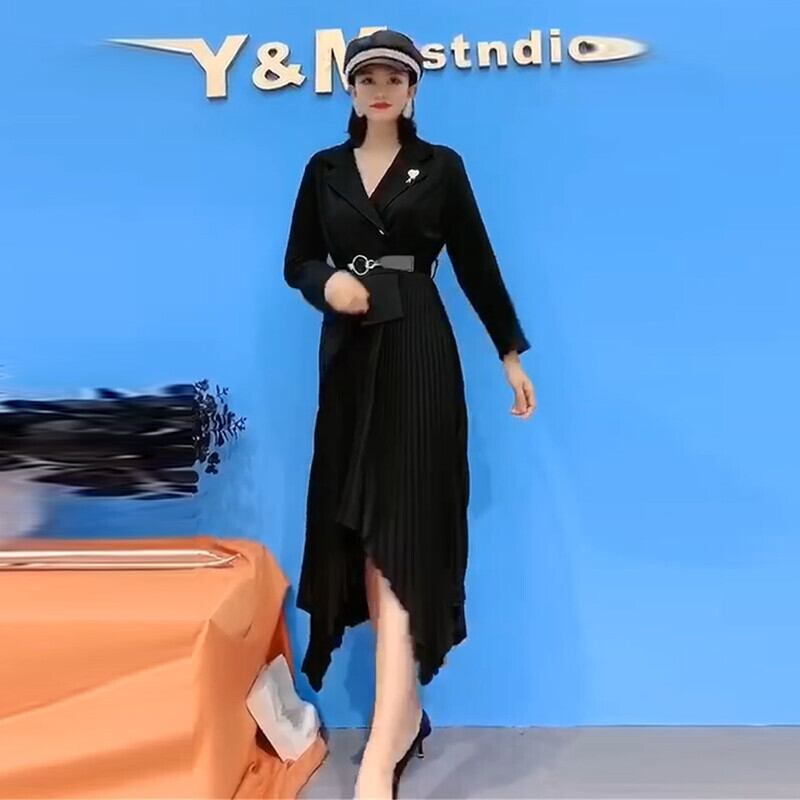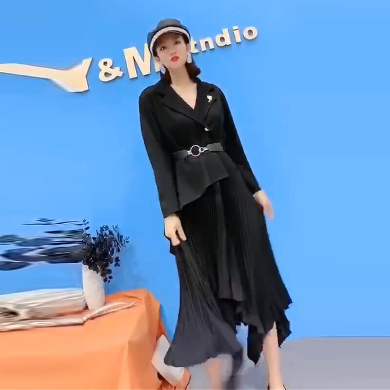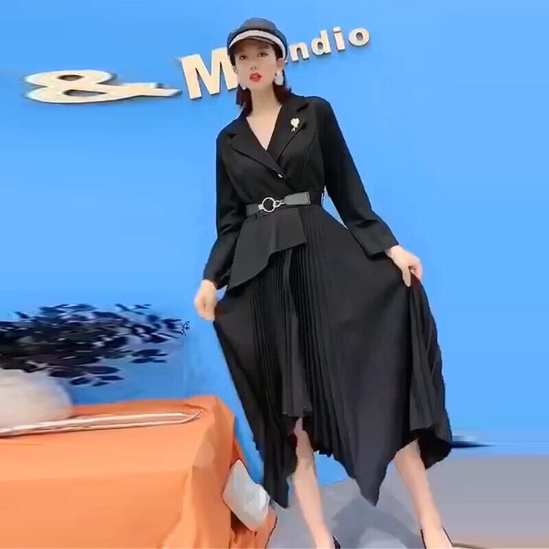 大きいサイズの太った姉妹の新しい襟ベルトプリーツスカートは年齢を減らし、薄いフランスの気質のドレス脂肪mmプラス脂肪潮 ミックスインファッション41050558420