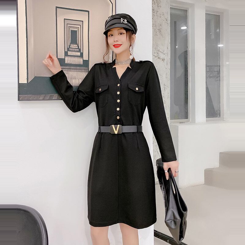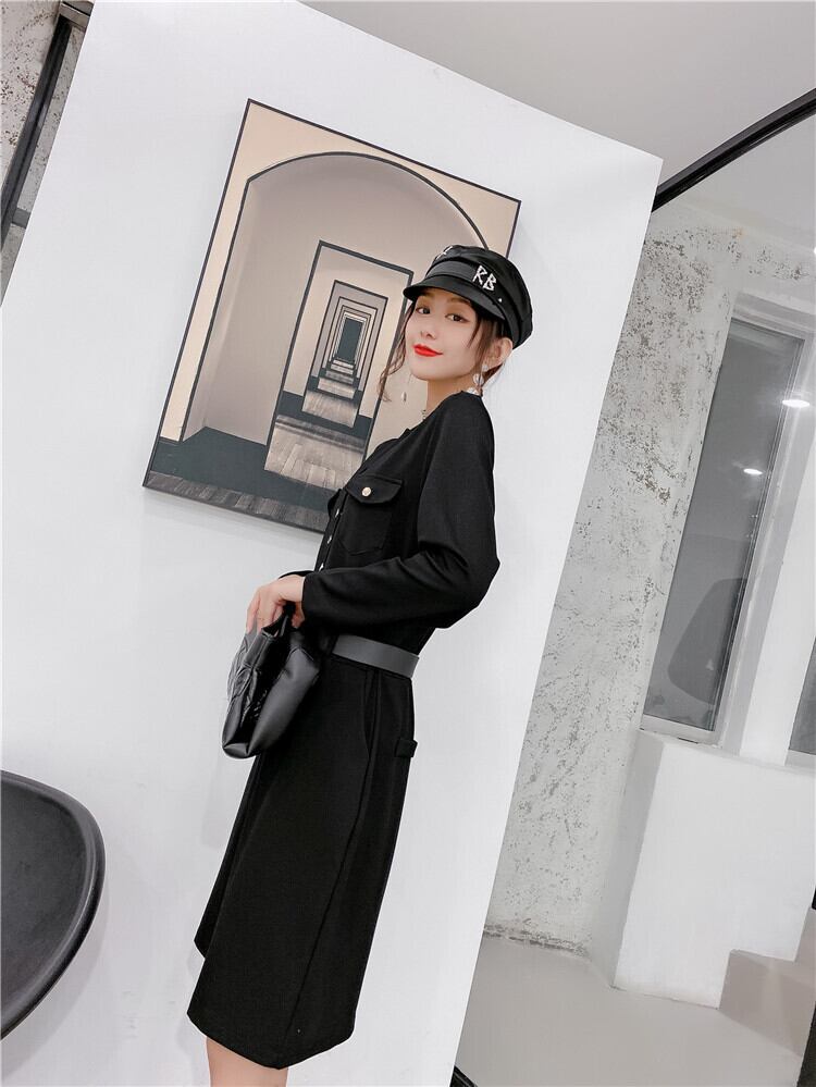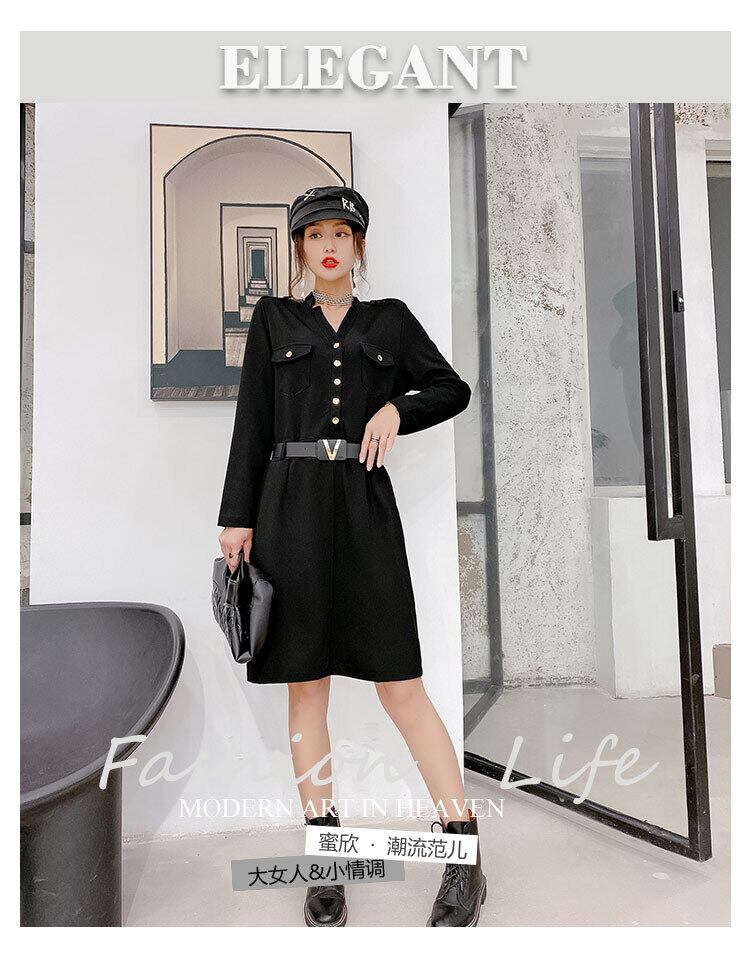 2020年秋新ビッグサイズファットシスターウエストスリミングドレス女性デザインセンスウエスタンファッションブラックスカート ミックスインファッション28567852689