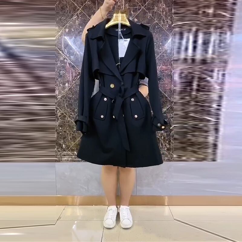 プラスサイズの女性の太いmmミドル丈ウインドブレーカーは、ファッションを200ポンド増やすために薄い秋のコートジャケットと肥料でした ミックスインファッション9329969553